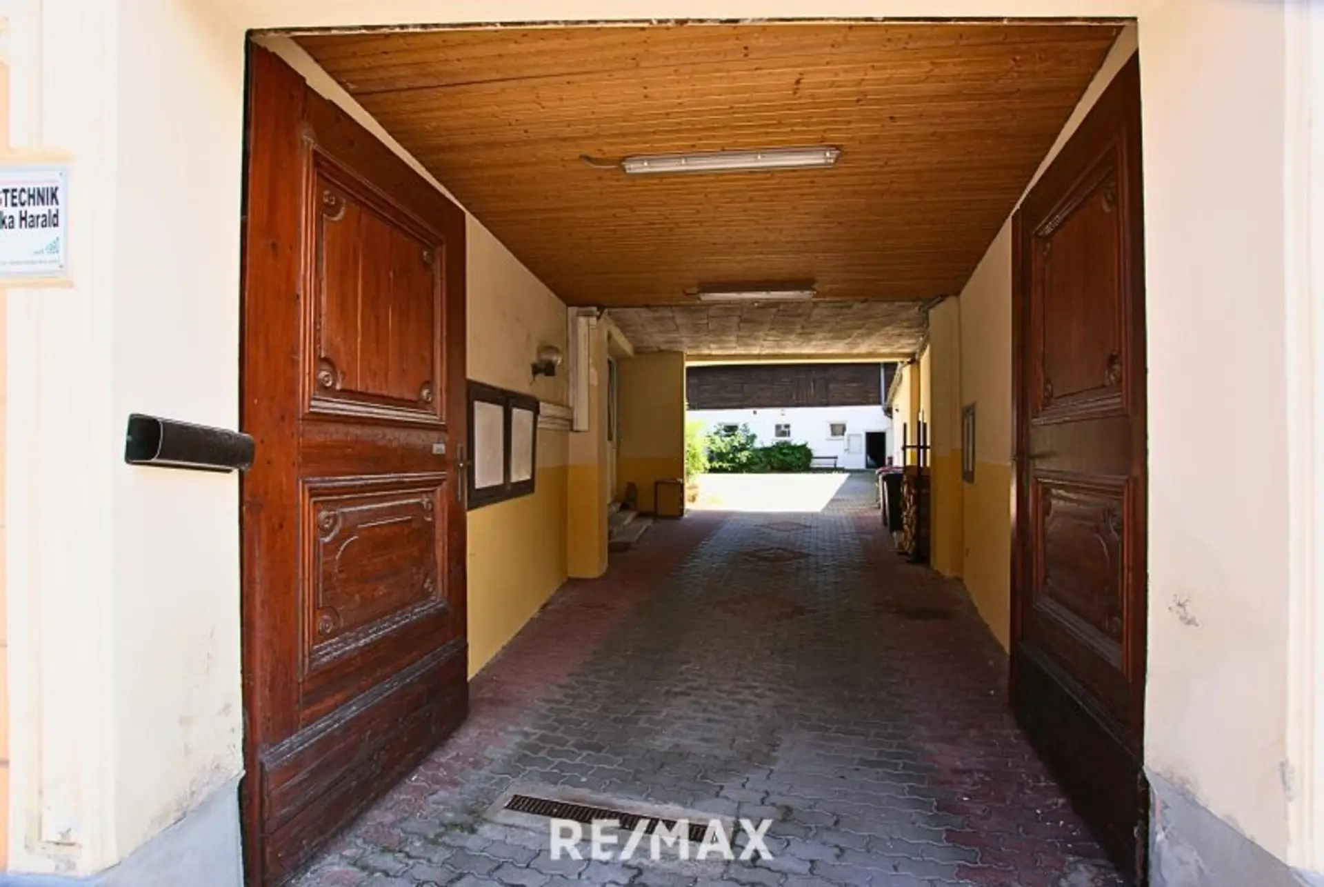 Von der Einfahrt des Gebäudes, welche in den Hof führt, erreichen Sie über den Stiegenaufgang den großzügigen Vorraum, von dem aus Sie rechter Hand in ihre Wohnung Top 3 gelangen. Im Flur angekommen, befindet sich gleich rechts ein Abstellraum, in welchem auch die Waschmaschine zu finden ist. Einige Schritte weiter, liegt nacheinander links die Küche und das WC, und am Ende des Flurs ein kleiner Raum der eventuell als Büro genutzt werden kann.