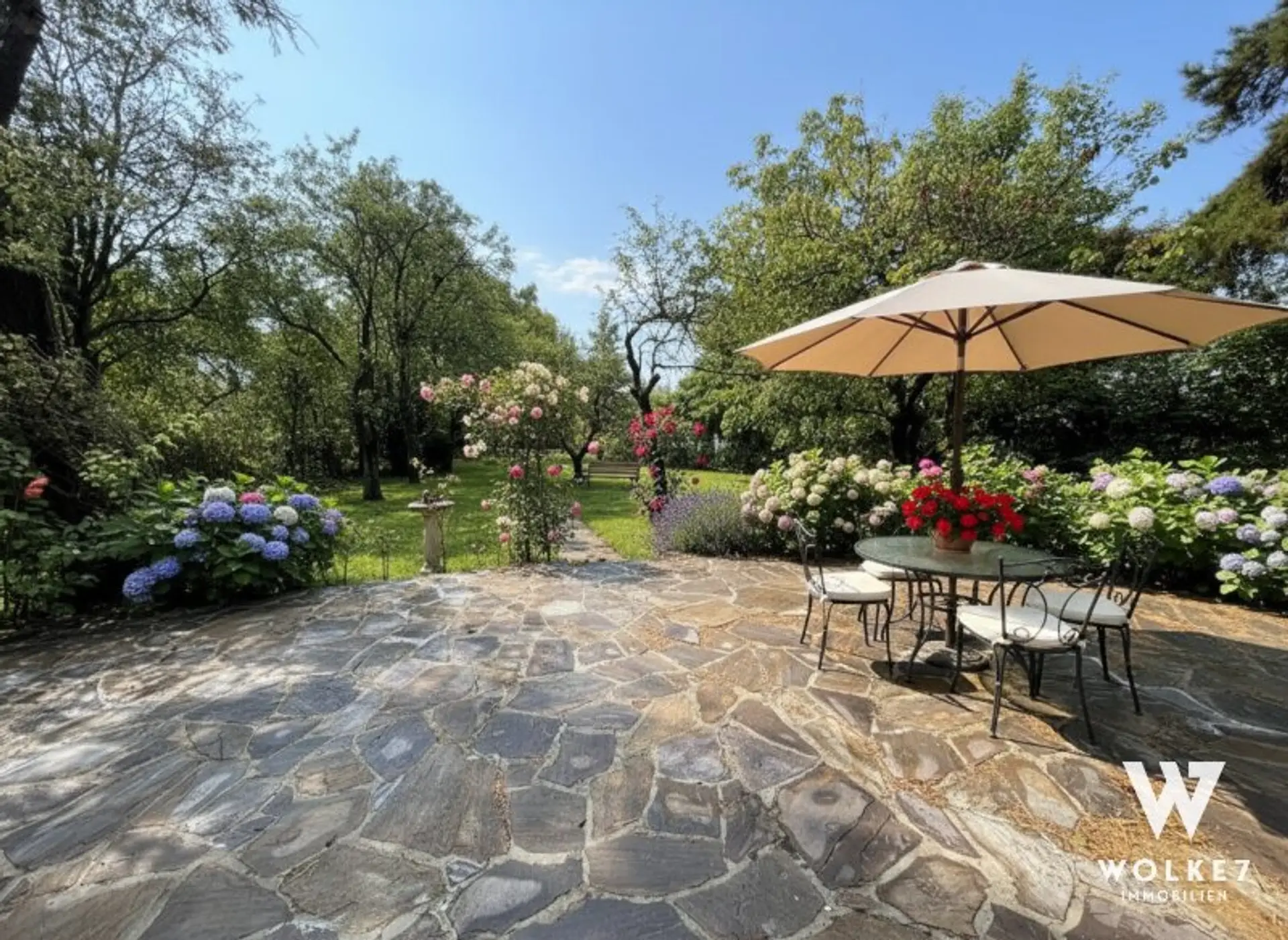 Das Haus befindet sich auf einem ca. 1.020 m² großen Grundstück in ebener Hanglage mit freiem Blick auf die Burg Liechtenstein – ein seltenes Juwel in exklusiver Villenlage.