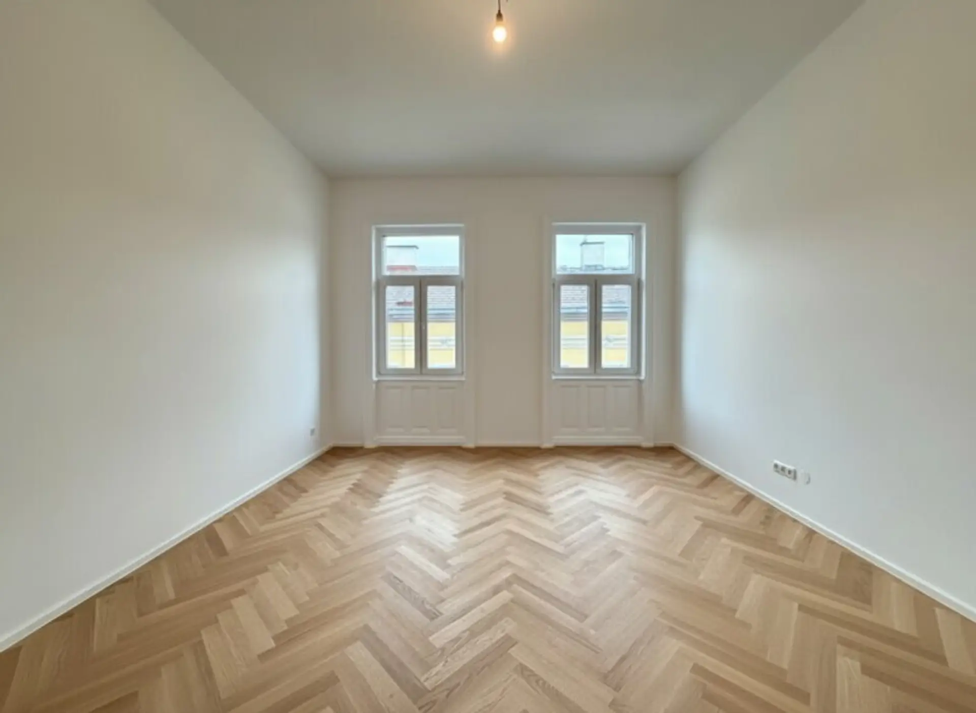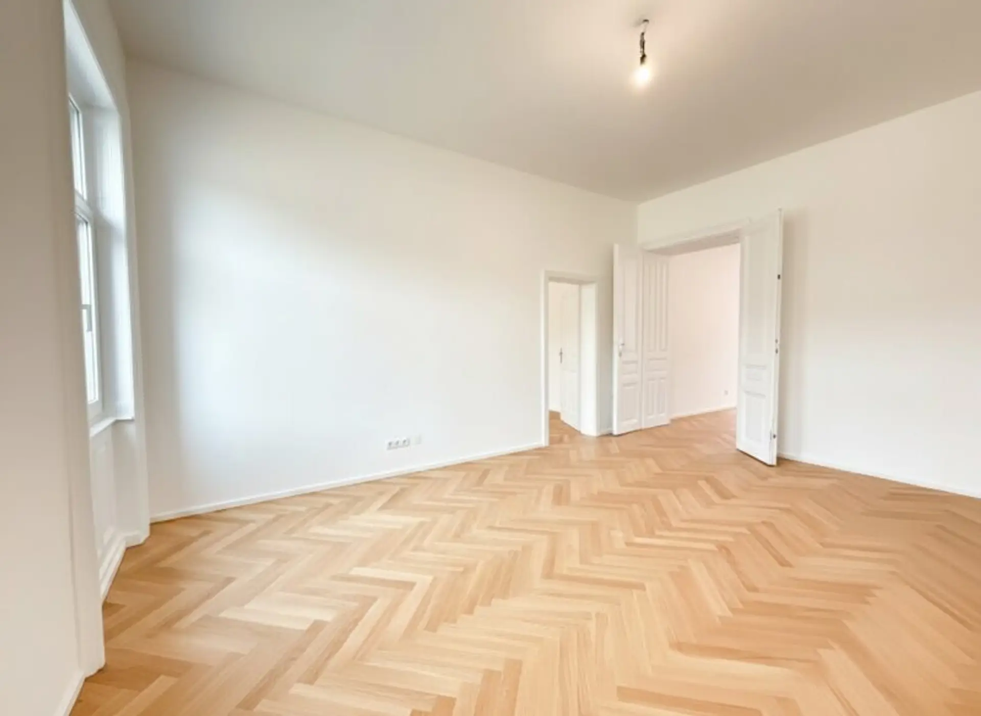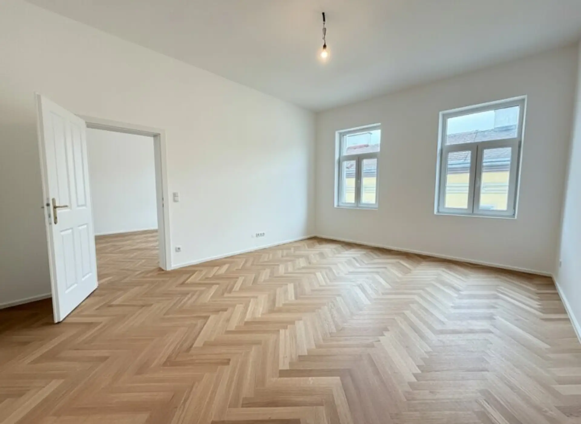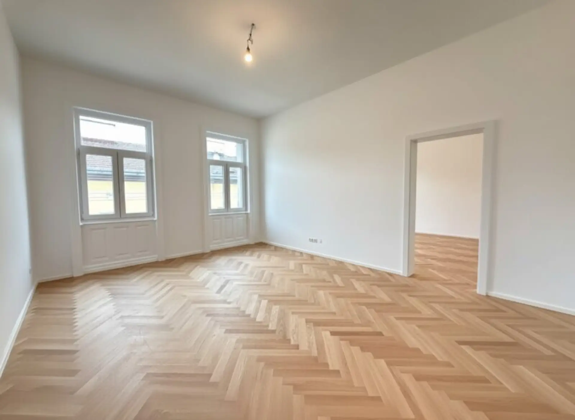 Zeitlose Ausstattung, stilvoller Fischgrätparkettboden, neue 3-fach verglaste Fenster und neue Sanitärgegenstände