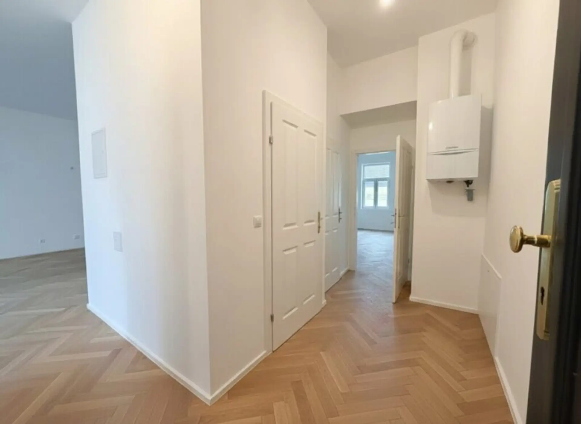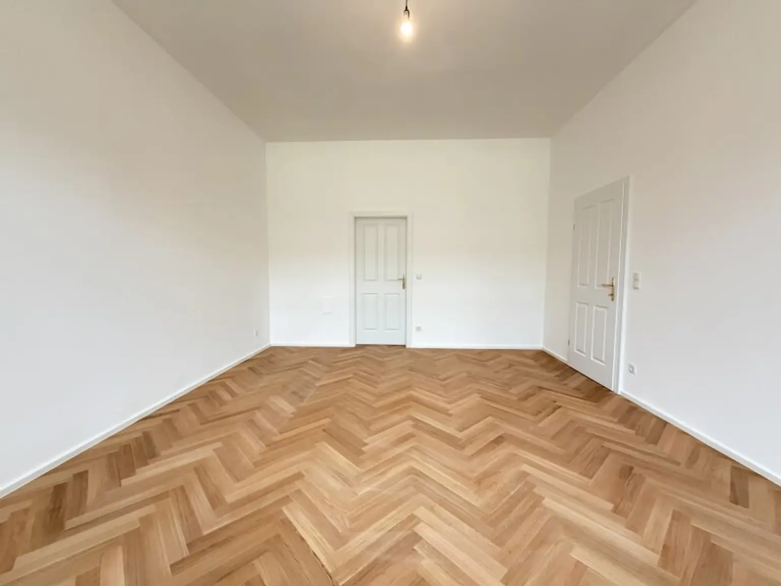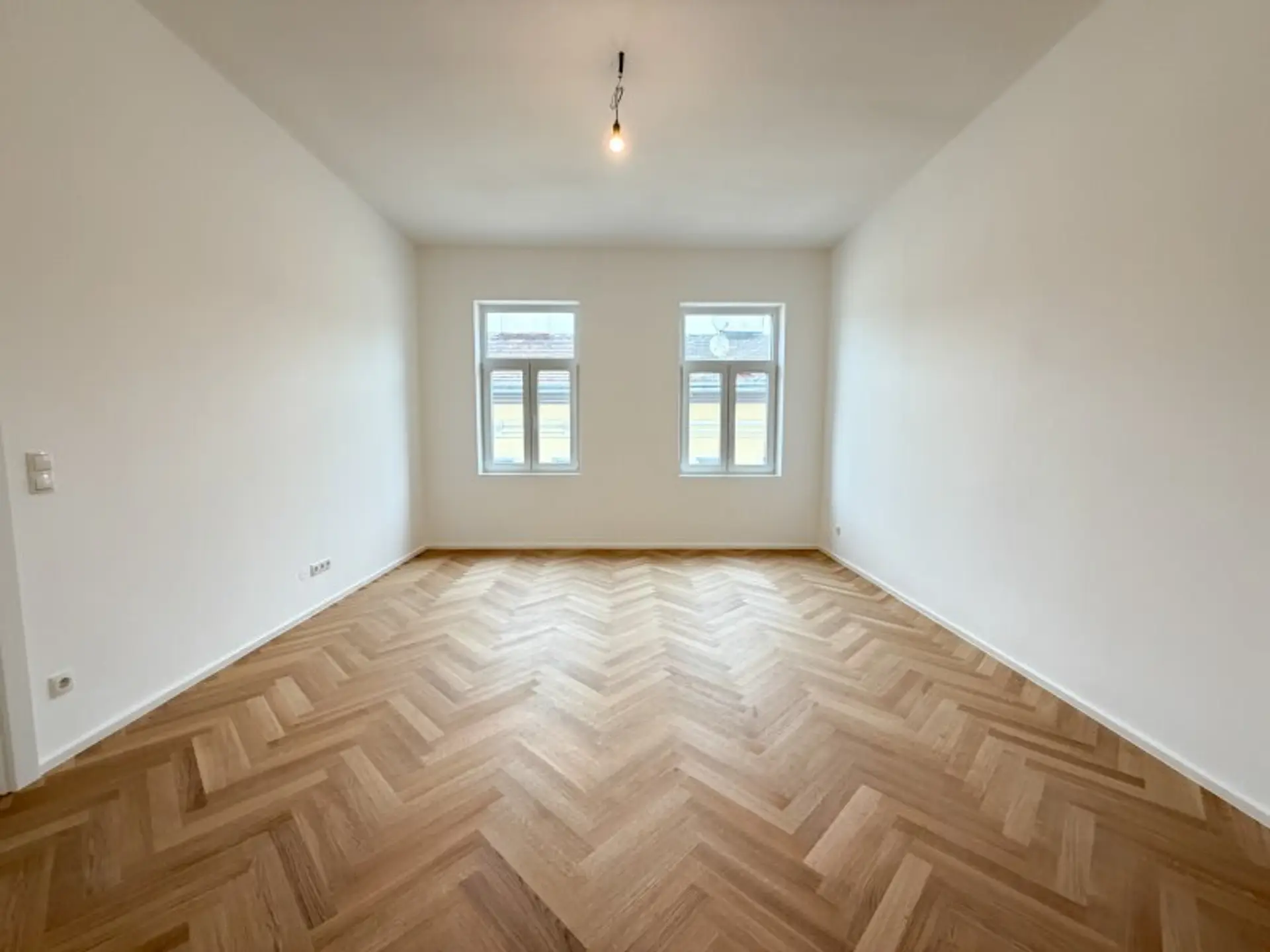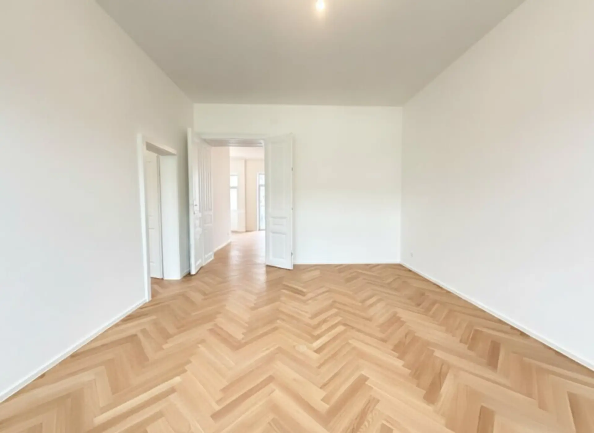 Zeitlose Ausstattung, stilvoller Fischgrätparkettboden, neue 3-fach verglaste Fenster und neue Sanitärgegenstände
