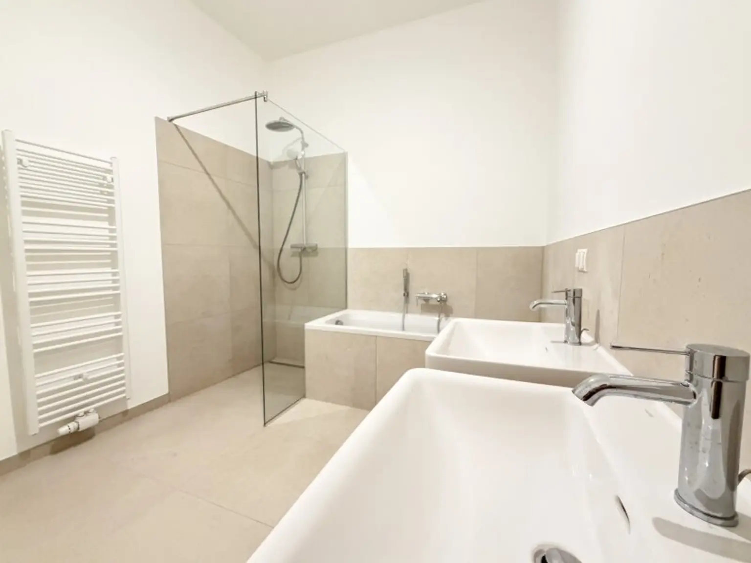 Badezimmer mit Dusche und Badewanne