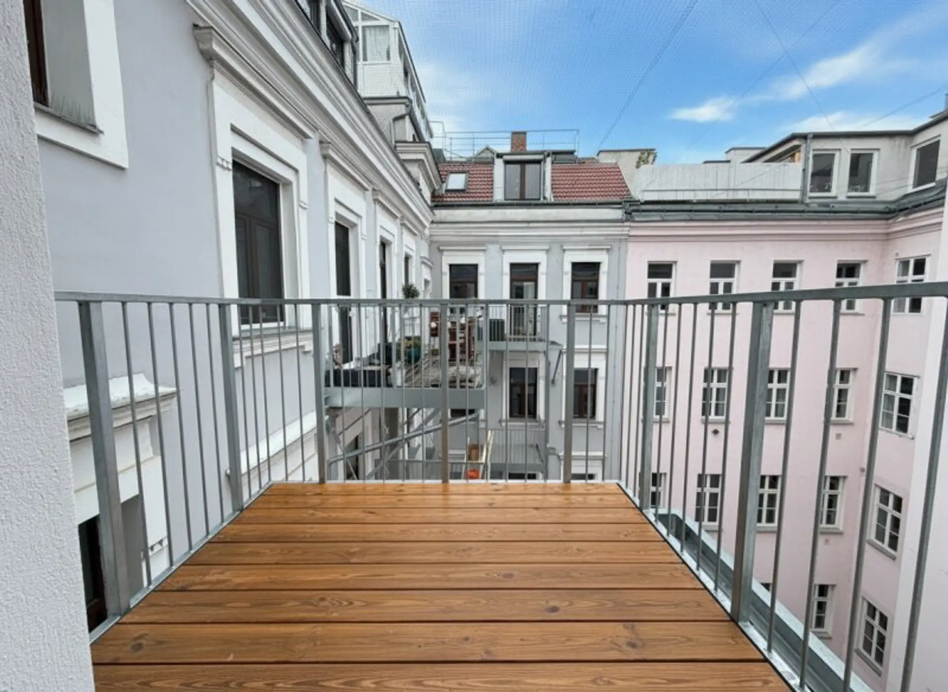 Balkonanbau im Innenhof: dort wo es möglich war, wurden Balkone errichtet, um zusätzlichen Freiraum für die Bewohner zu schaffen