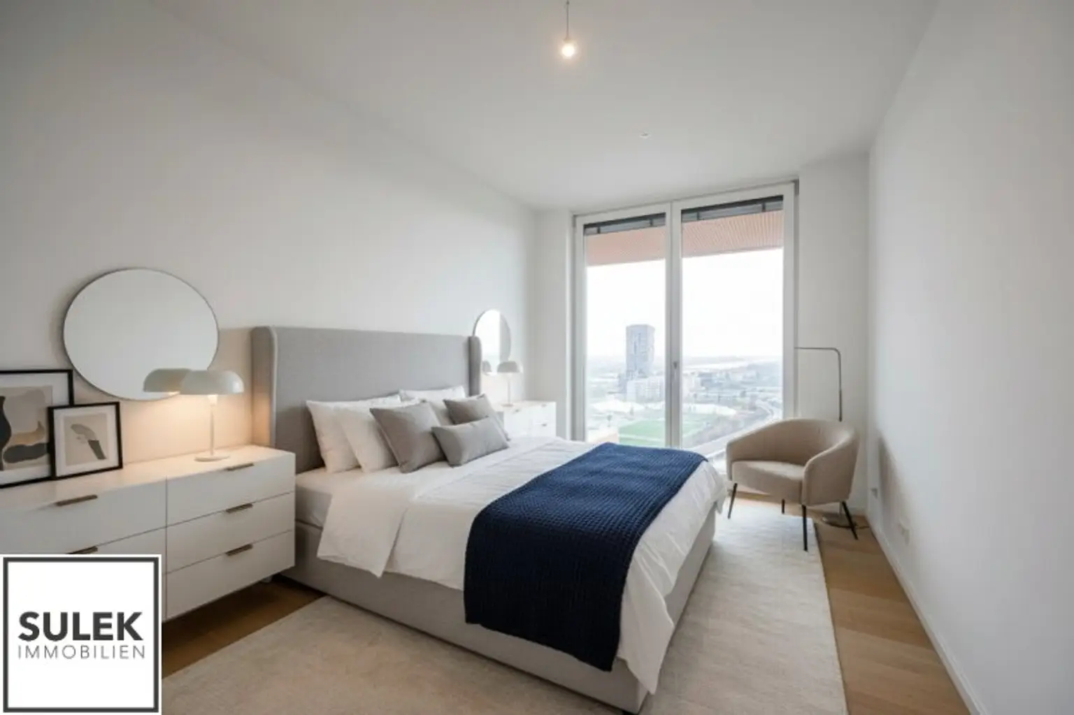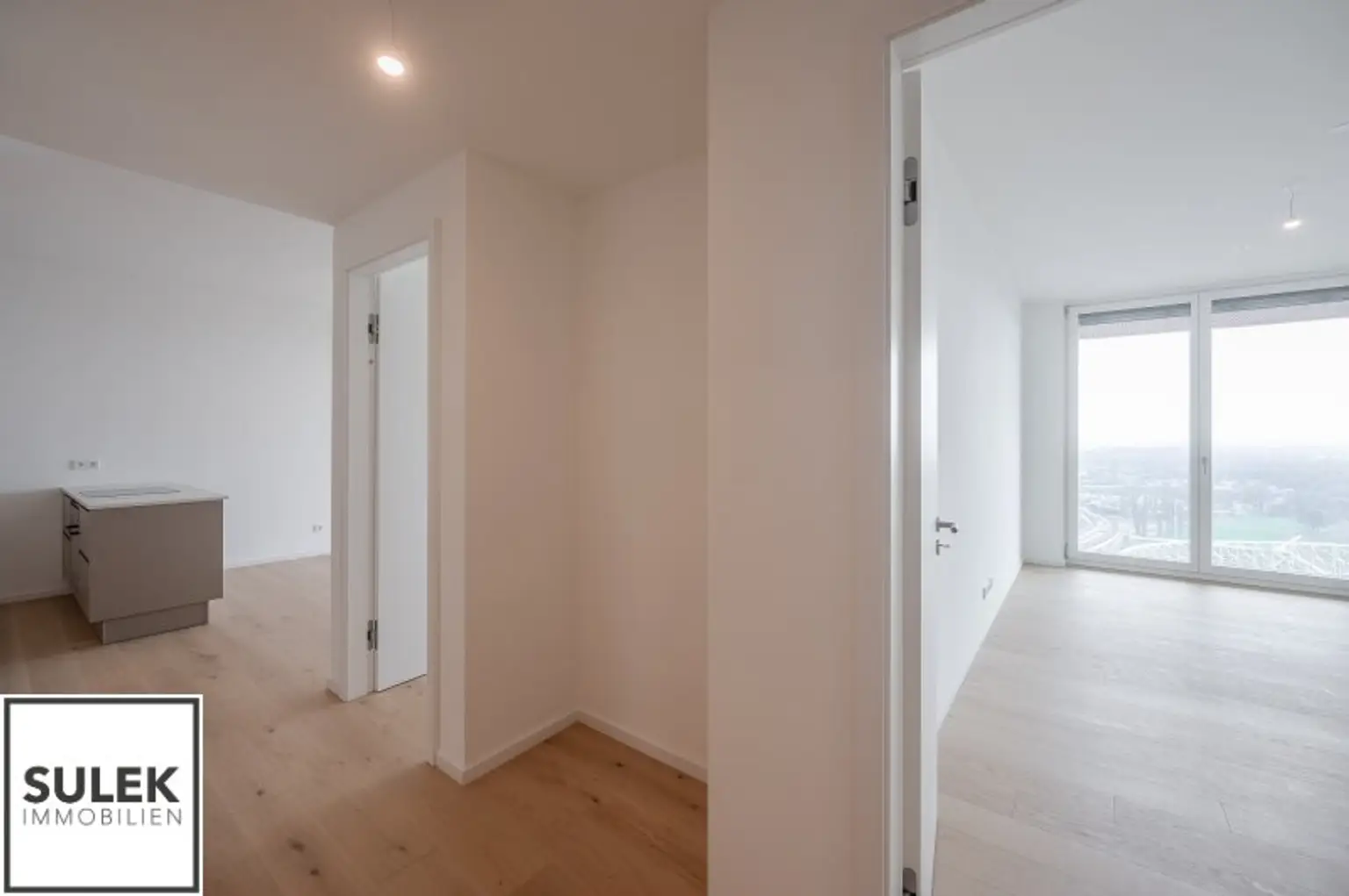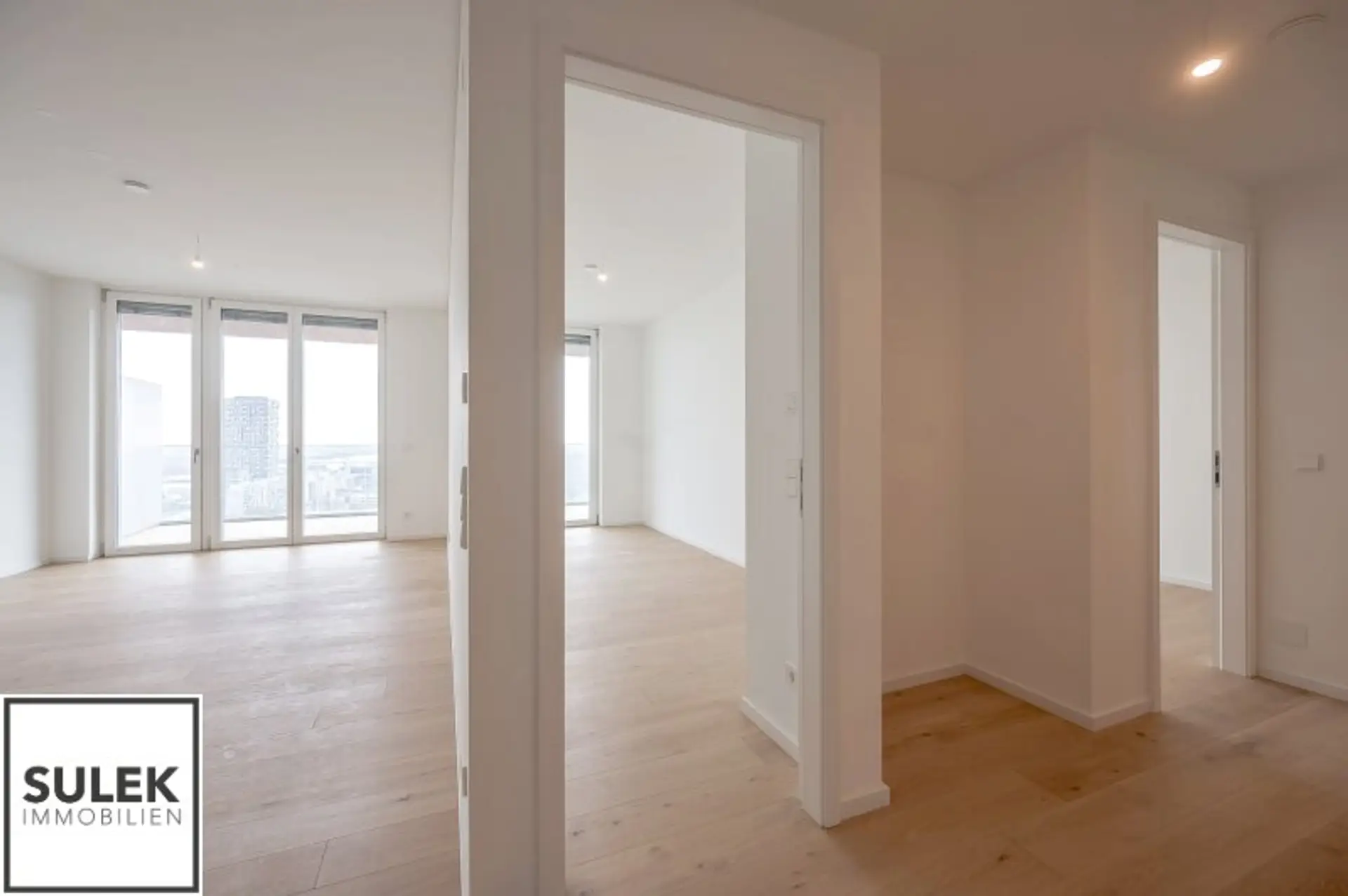 In der 26. Etage des renommierten Projekts Grünblick im Viertel Zwei, direkt am Grünen Prater und nur wenige Schritte von der U2-Station Stadion entfernt, erwartet Sie ein hochwertiger 3-Zimmer-Erstbezug mit 13 m² Balkon und beeindruckendem Fernblick über die Stadt Wien und darüber hinaus.