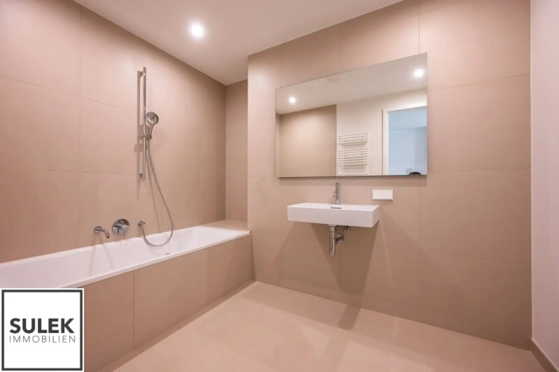 * Badezimmer mit Badewanne und Handtuchheizkörper