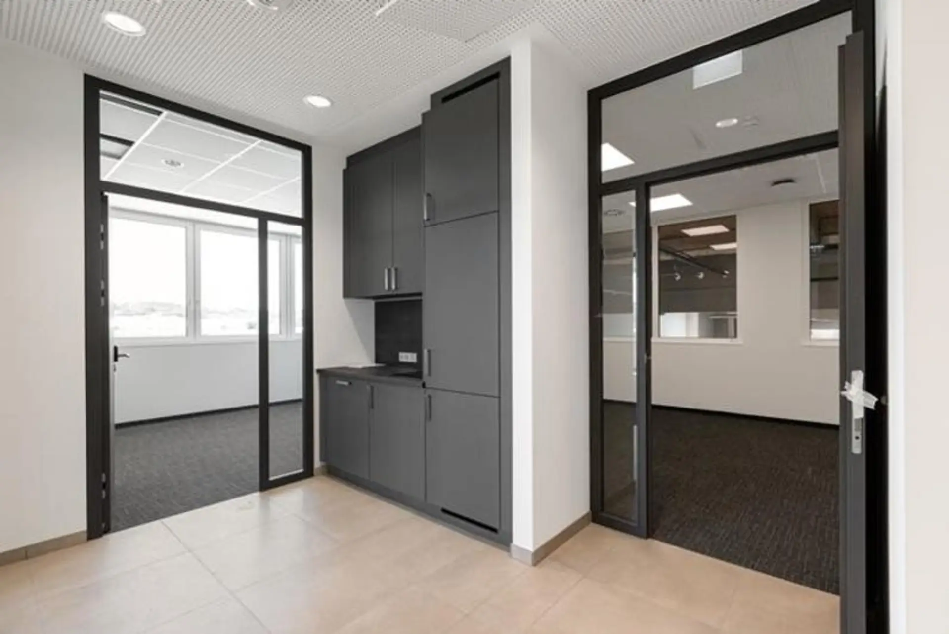 Die Büros bieten lichtdurchflutete Räume, eine Klimatisierung über akustisch wirksame Heiz- und Kühldecken (22°C Heizfall / 26°C Kühlfall) sowie eine durchdachte IT-Infrastruktur (CAT 7-Netzwerk).