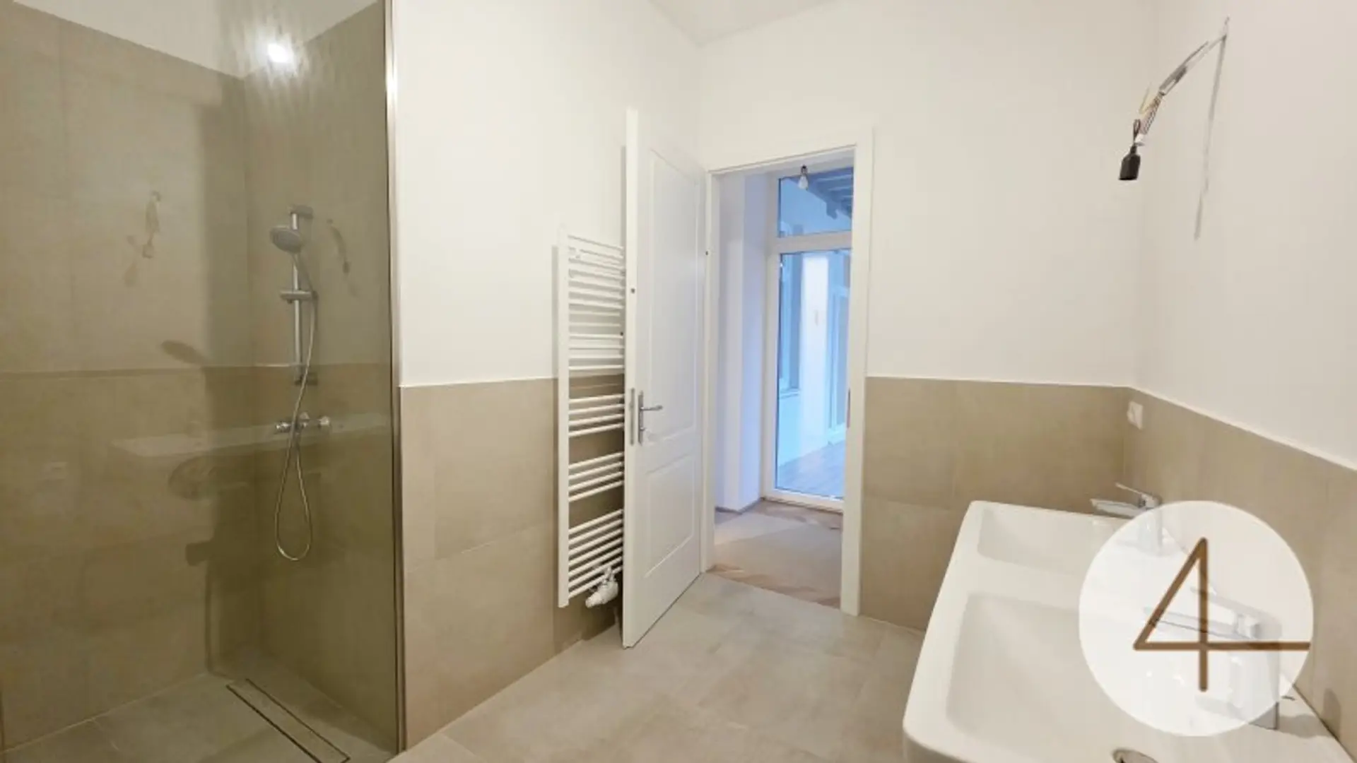 Die Wohnung liegt in einem stilvollen Gründerzeitgebäude aus etwa 1880, in unmittelbarer Nähe des beliebten Naherholungsgebiets Laaer Wald. Das Umfeld zeichnet sich durch zahlreiche Wohn- und Geschäftshäuser gleicher architektonischer Bauart aus.