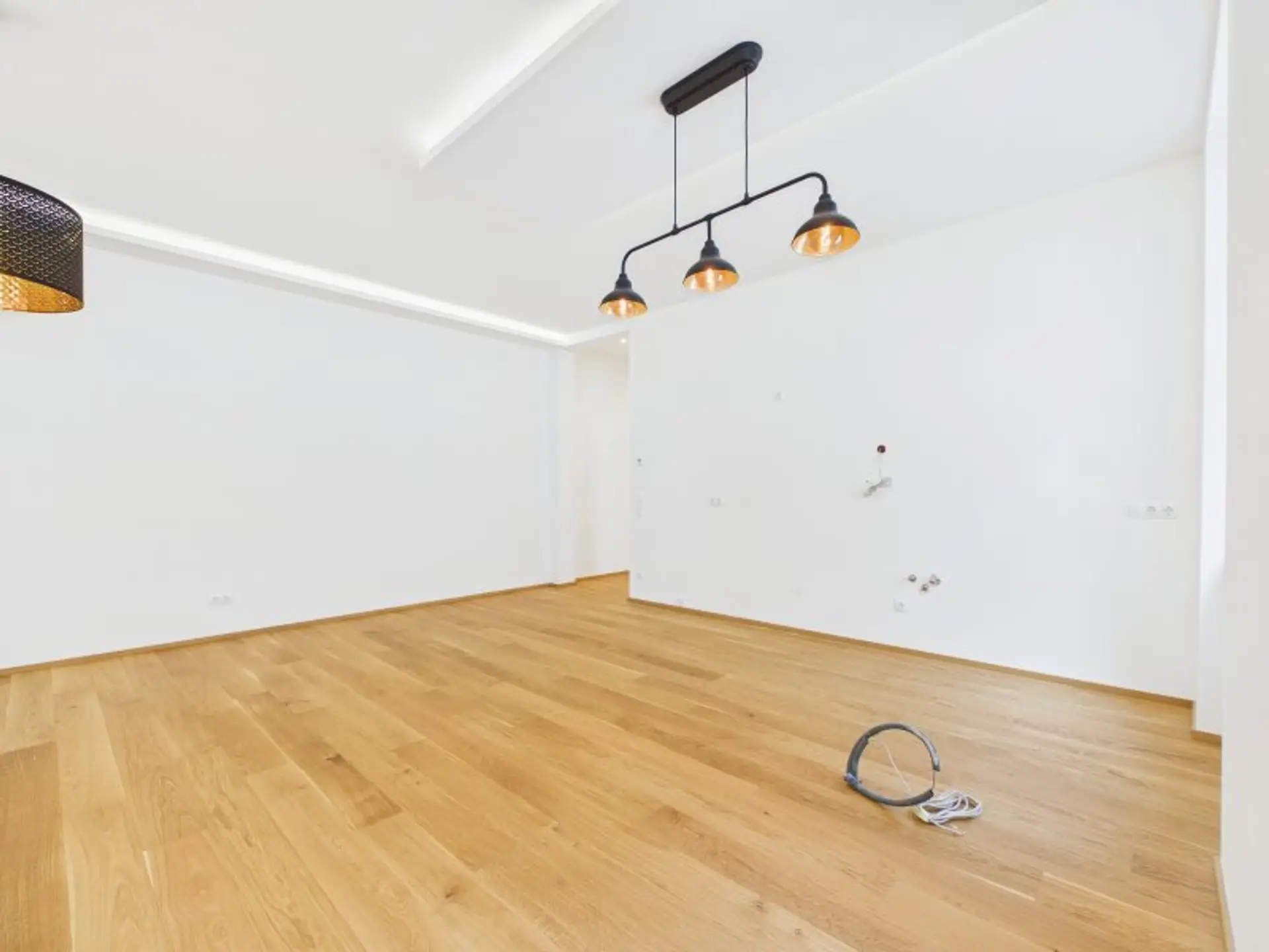 - Böden: Neu verlegter Echtholz-Parkett.