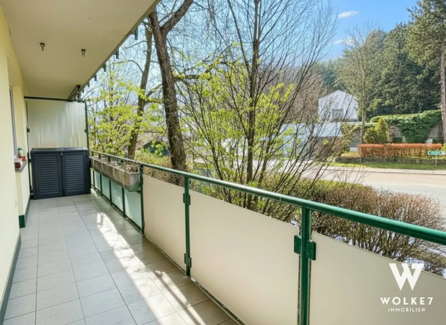 3 Schlafzimmer + 1 Wohnzimmer + Badezimmer mit Dusche _und_ Badewanne + WC + Loggia mit Grünblick