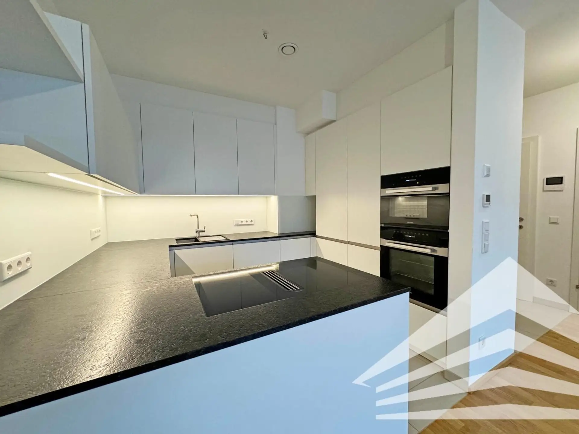 Absolut erwähnenswert ist auch die maßgeschneiderte und hochwertigst ausgestattet Einbauküche der Tischlerei Mayrhofer. Edle Steinarbeitsplatten und Markengeräte von Miele bieten sowohl jedem Hobbykoch als auch dem Profi beste Bedingungen.
