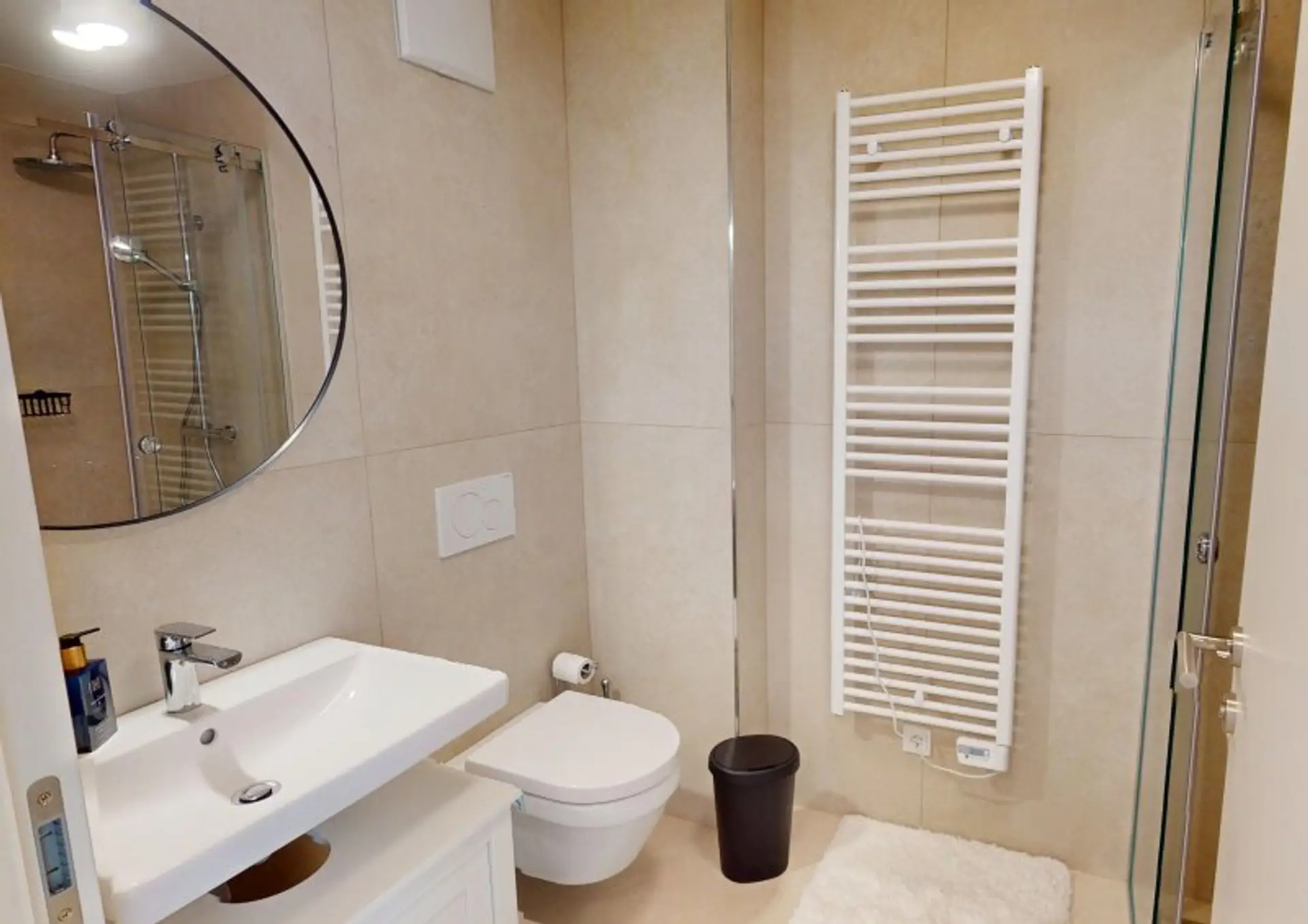Die Wohnung ist klimatisiert, hochwertig ausgestattet, das Haus wird mit einer Luftwärmepumpe beheizt, die Übertragung erfolgt über Fußbodenheizung.