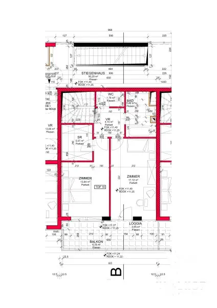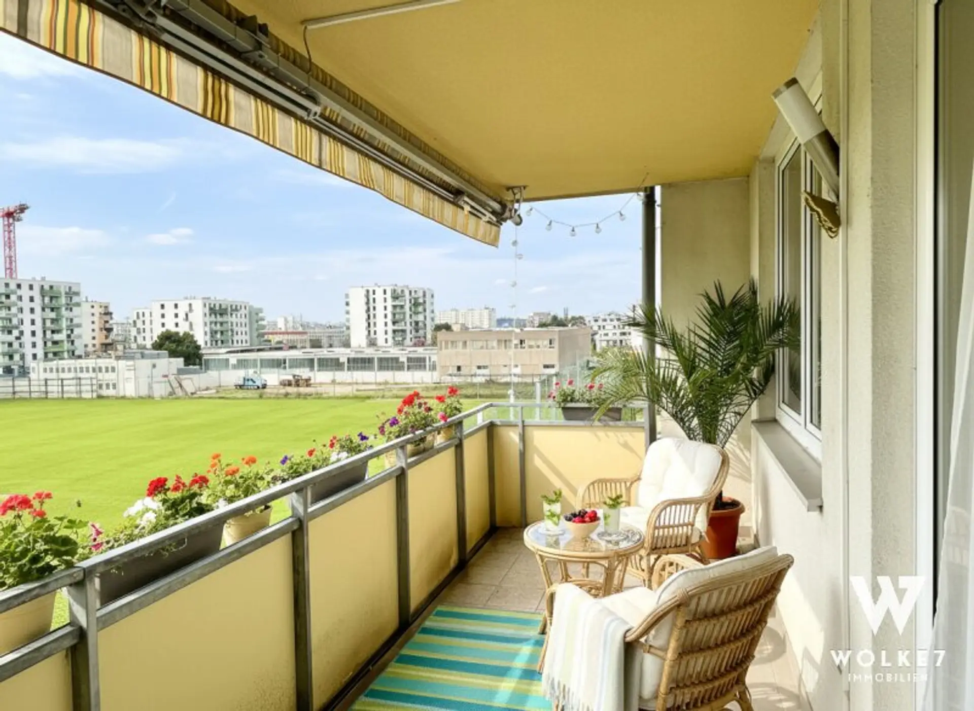 Die Wohnung verfügt über eine großzügige Wohnküche mit eingerichteter Küche, zwei gut geschnittene Schlafzimmer sowie zwei Außenflächen, die teilweise als Balkon und Loggia ausgeführt sind. Beide Freiflächen sind ebenso wie die gesamte Wohnung ostseitig orientiert.