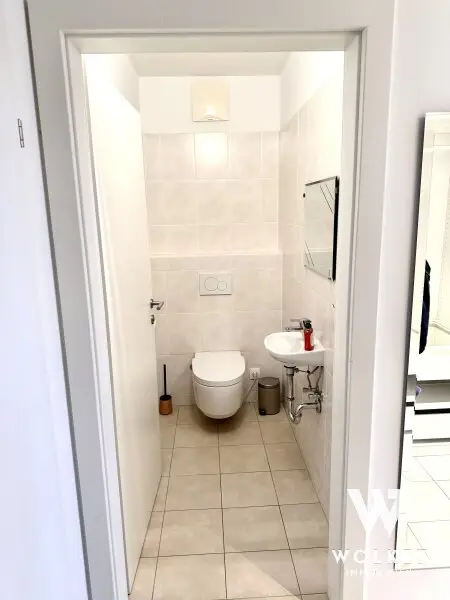 Die Küche ist mit hochwertigen Geräten ausgestattet und fügt sich funktional wie optisch ideal in den Wohnbereich ein. Der Allgemeinzustand der Wohnung ist sehr gut, sodass sie sich perfekt für Mieter eignet, die ein gepflegtes Zuhause in moderner Wohnhausanlage suchen.