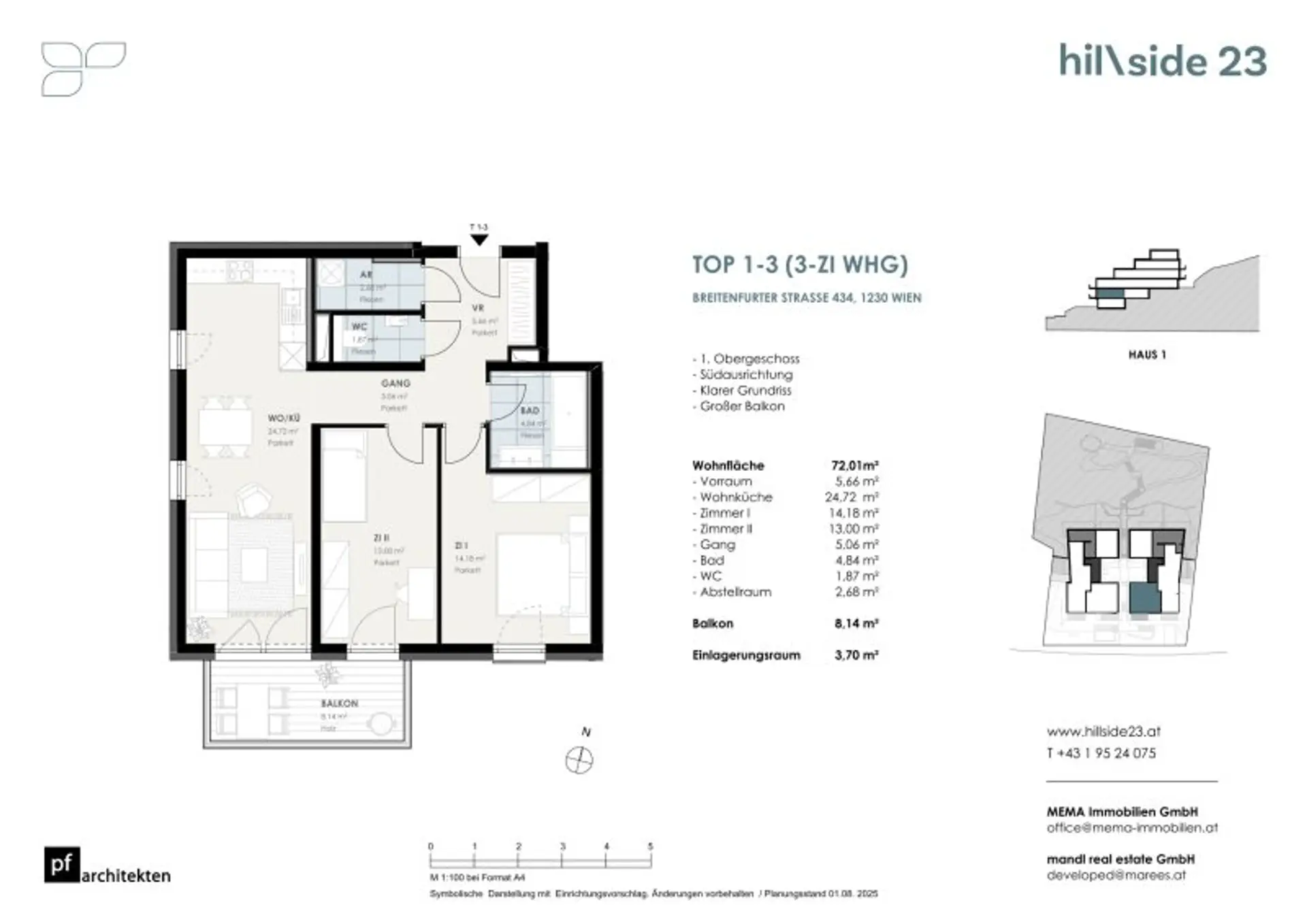 Die 72,01 m²-Wohnfläche bietet wie folgt: