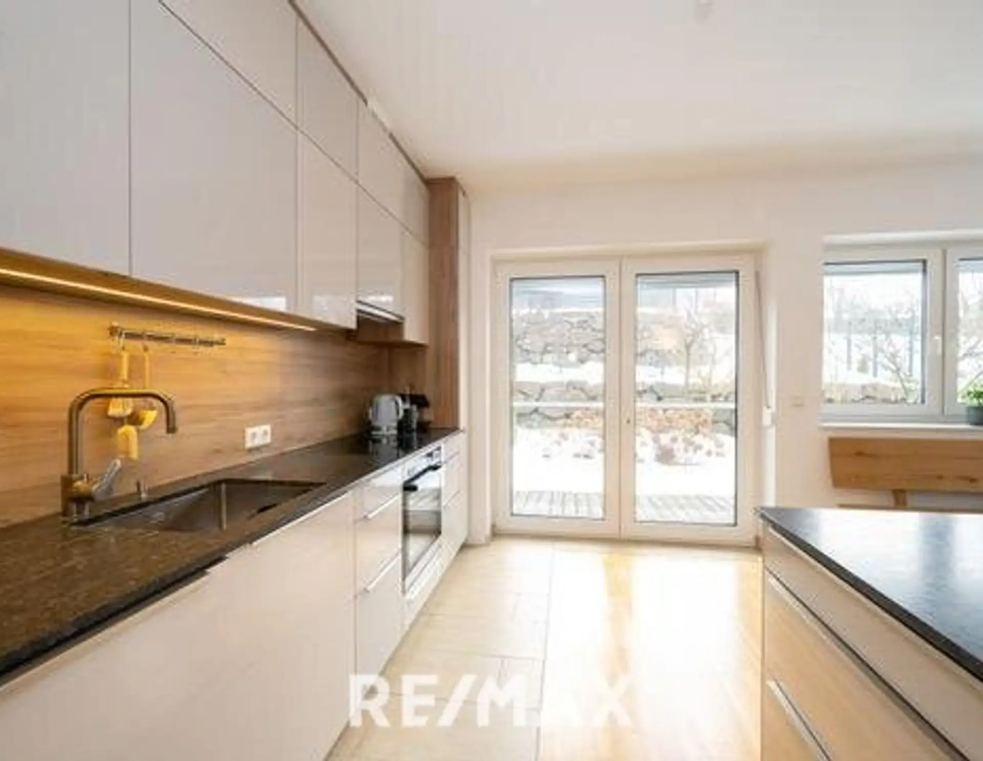NEU - Hochwertige 3-Zimmer-Wohnung mit Tischlerküche, 160 m² Eigengarten, Terrasse und Garage in ruhiger, grüner Lage!