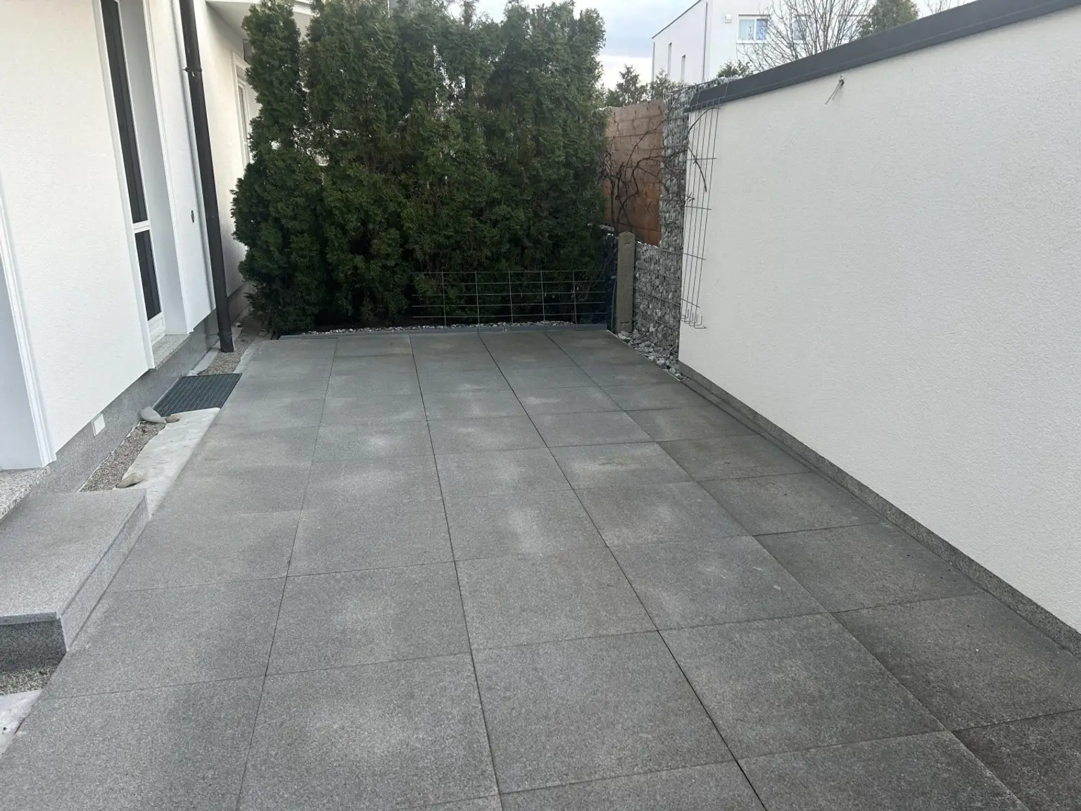 Vor dem Hauseingang befinden sich 2 PKW Stellplätze und eine Terrasse mit kleinem Garten vor dem Haus.