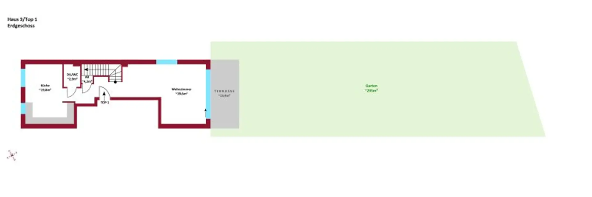 * Top 1: Wohnfläche: ca. 102,5m²; 3 Zimmer; Garten: ca. 207m²; Terrasse: ca. 15,4m²; Kaufpreis: 949.000,- Euro