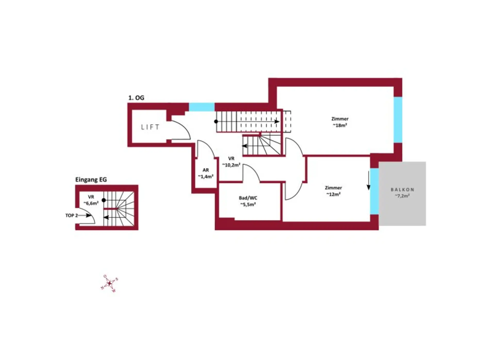 * Top 2: Wohnfläche: ca. 118,4m²; 4 Zimmer; Balkon: ca. 2,9m²; Terrasse: ca. 20,33m²; Dachterrasse: ca. 44m²; Kaufpreis: 1.098.000,- Euro