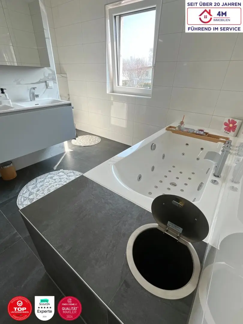 Die Immobilie überzeugt zudem durch ihre moderne Haustechnik: Eine Luftwärmepumpe sorgt für effizientes und nachhaltiges Heizen, Videoüberwachung für zusätzliche Sicherheit im Haus und ein praktisch integrierter Wäscheabwurfschacht, der den Alltag erleichtert.