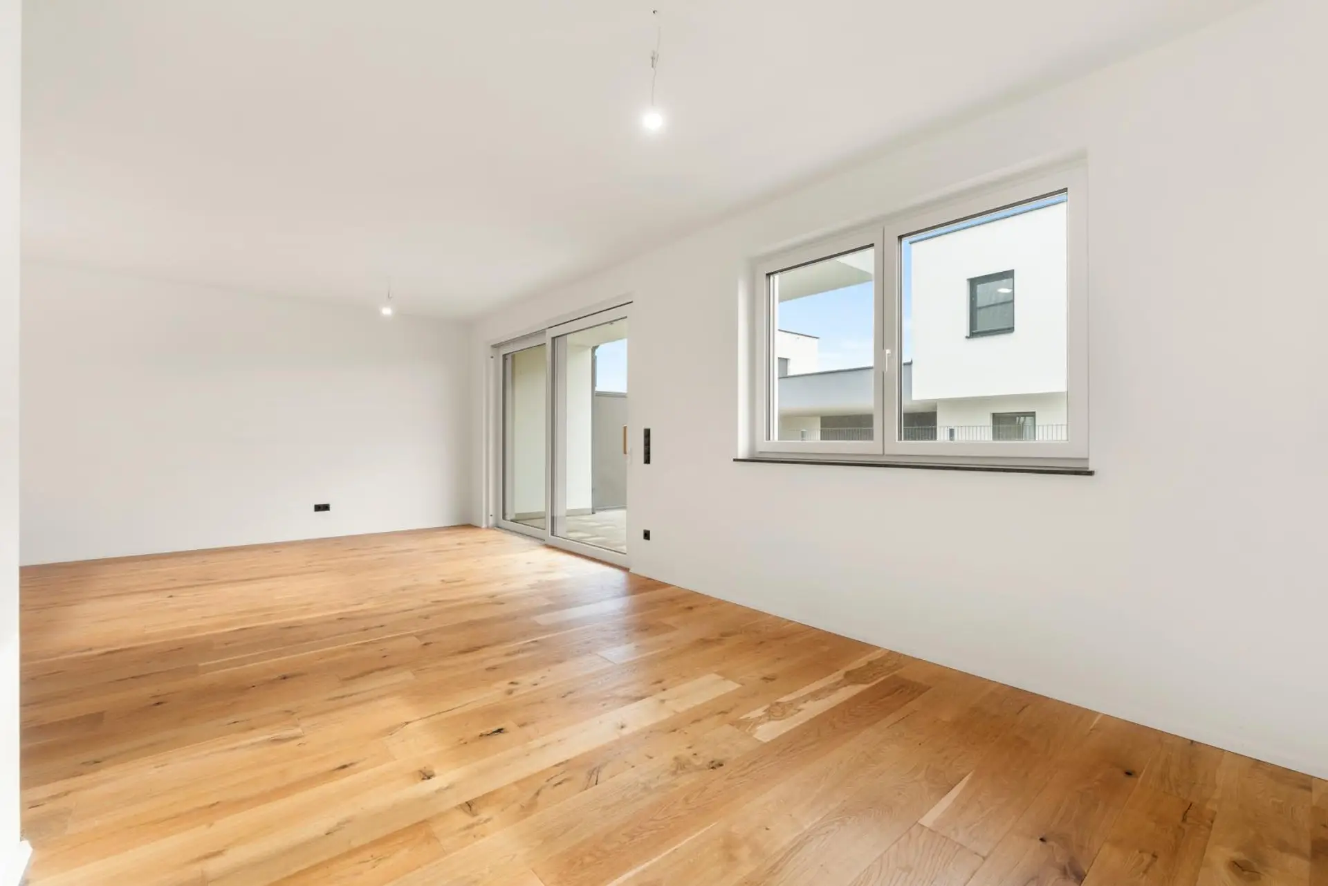 Großzügige Fensterfronten mit Insektenschutz sowie elektrisch bedienbare Jalousien sorgen für helle Wohnräume und ein angenehmes Wohnklima.