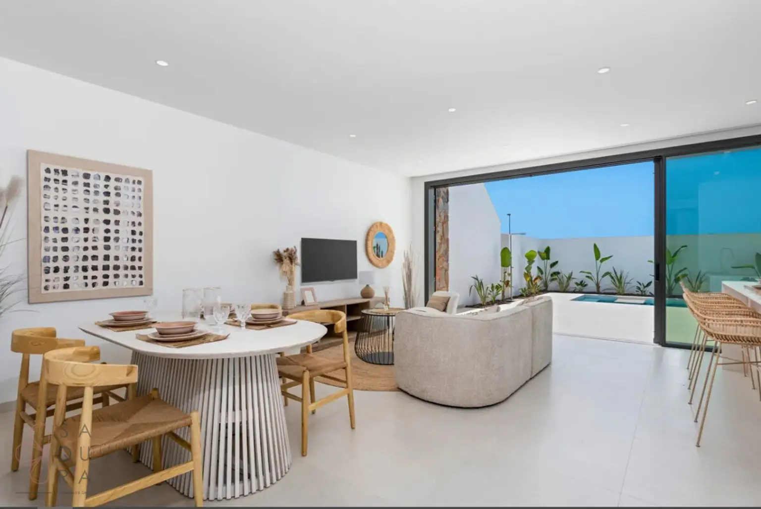 These premium new-build semi-detached villas, all on one level, are located in one of the most desirable areas of Murcia, just 1 km from the beach, restaurants, bars and shops. Situated next to La Serena Golf, this residential project offers modern architecture, exceptional building quality and excellent rental potential — ideal for international investors.