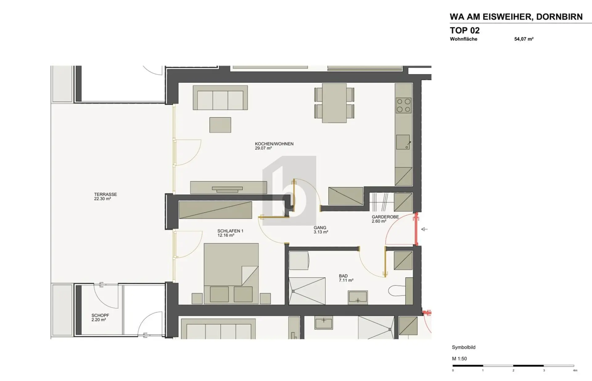 Diese charmante 2?Zimmer?Gartenwohnung im Neubauprojekt in Dornbirn (54 m²) ist ideal für Singles oder Paare, die Ruhe und beste Anbindung verbinden möchten. Diese Wohnung ist TOP 2. Fertigstellung Frühjahr 2027. In der Wohnanlage stehen weitere Wohnungen zur Wahl: 2 bis 4 Zimmer, 46?90 m², Preise 334.880?686.799 ?. Verschiedene Grundrisse verfügbar, Details auf Anfrage. Tiefgaragenplätze optional.