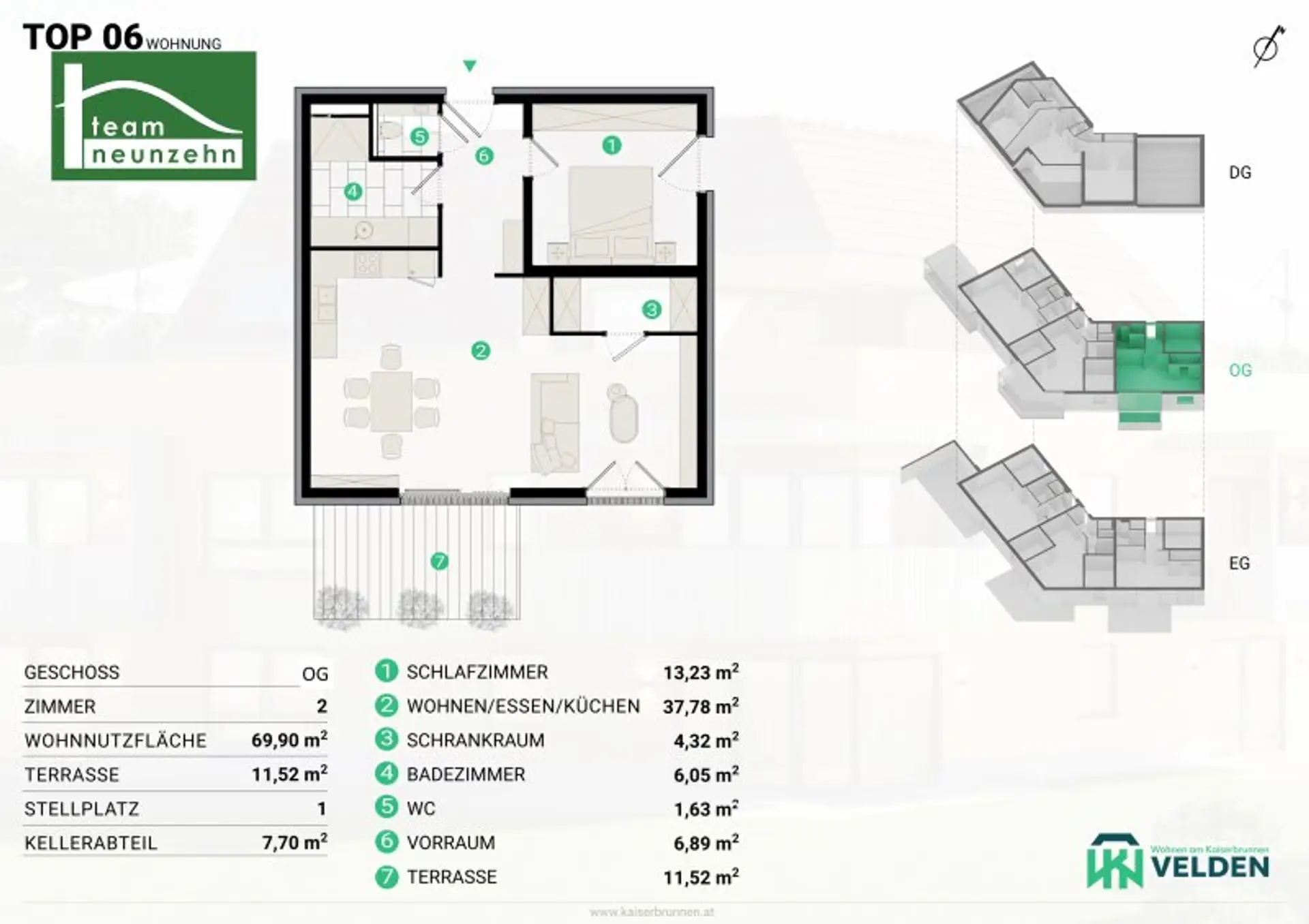 Je Wohnung ist ein Stellplatz zum Preis von € 15.000,– verpflichtend mitzuerwerben.