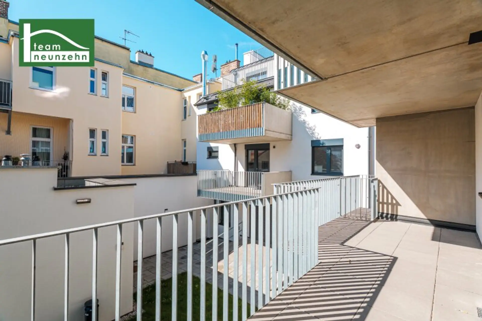 * Begrünter Innenhof und Dachterrasse als ruhige Rückzugsorte im urbanen Umfeld