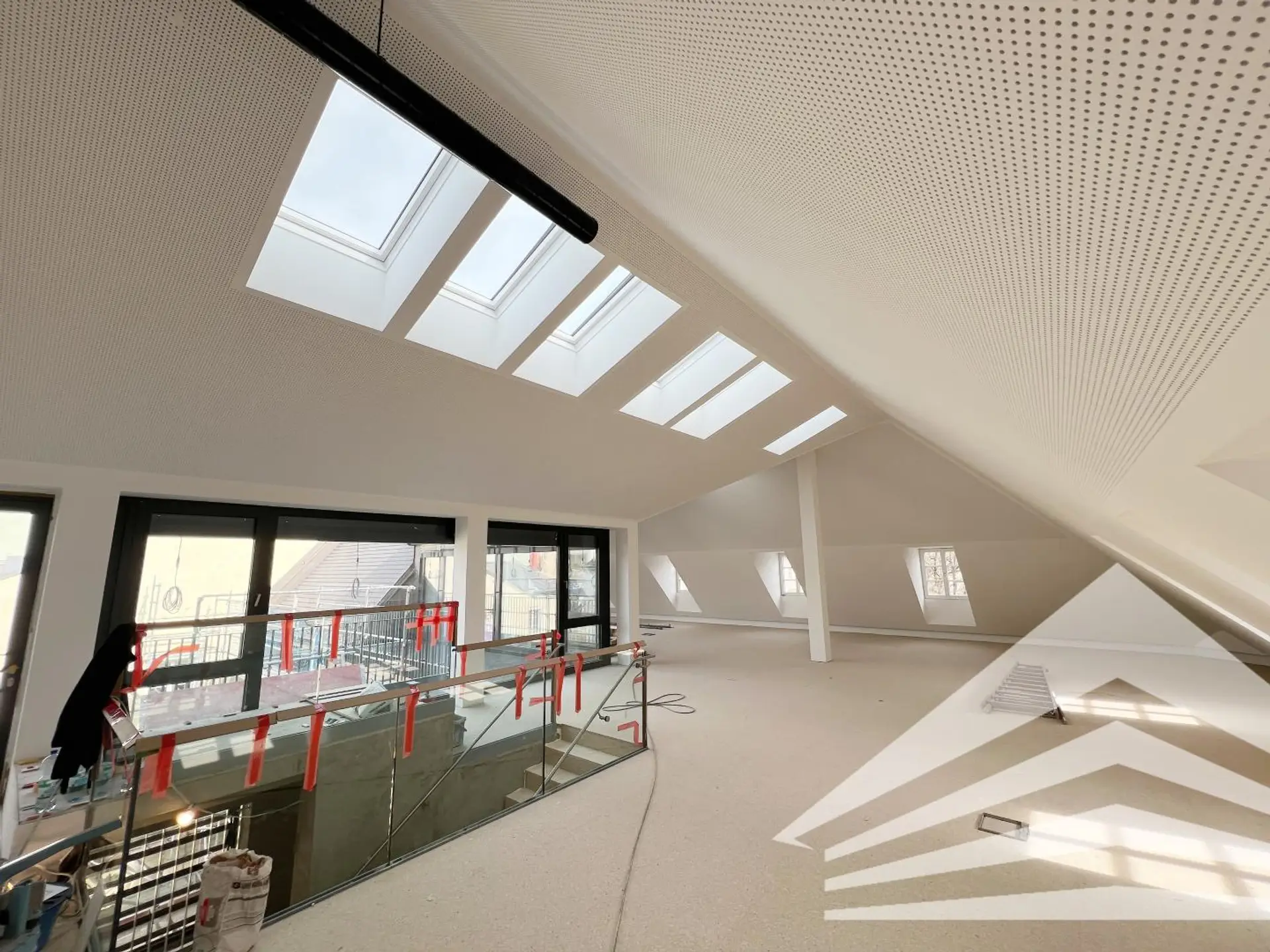 Im Zuge der aktuellen Sanierung dieses historischen Bestandsgebäudes entsteht ein neues, exklusives Büro im Dachgeschoss mit herrlichem Ausblick über die Promenade und das Landhaus.