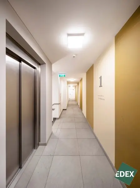 Die Wohnung ist hochwertig mit Echtholzparkett, Feinsteinzeugfliesen, moderner Einbauküche und Fernwärme-Zentralheizung ausgestattet. Sie befindet sich in einem sehr gepflegten Neubau mit Lift, Tiefgarage und Fahrradabstellräumen.