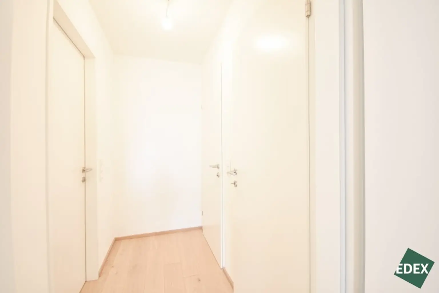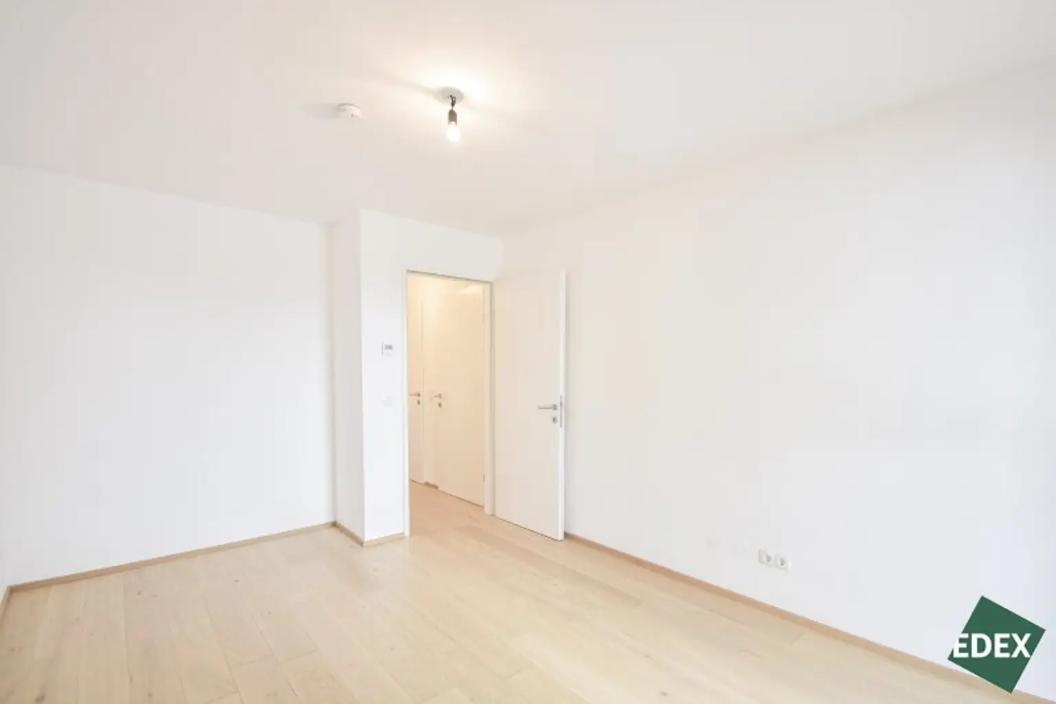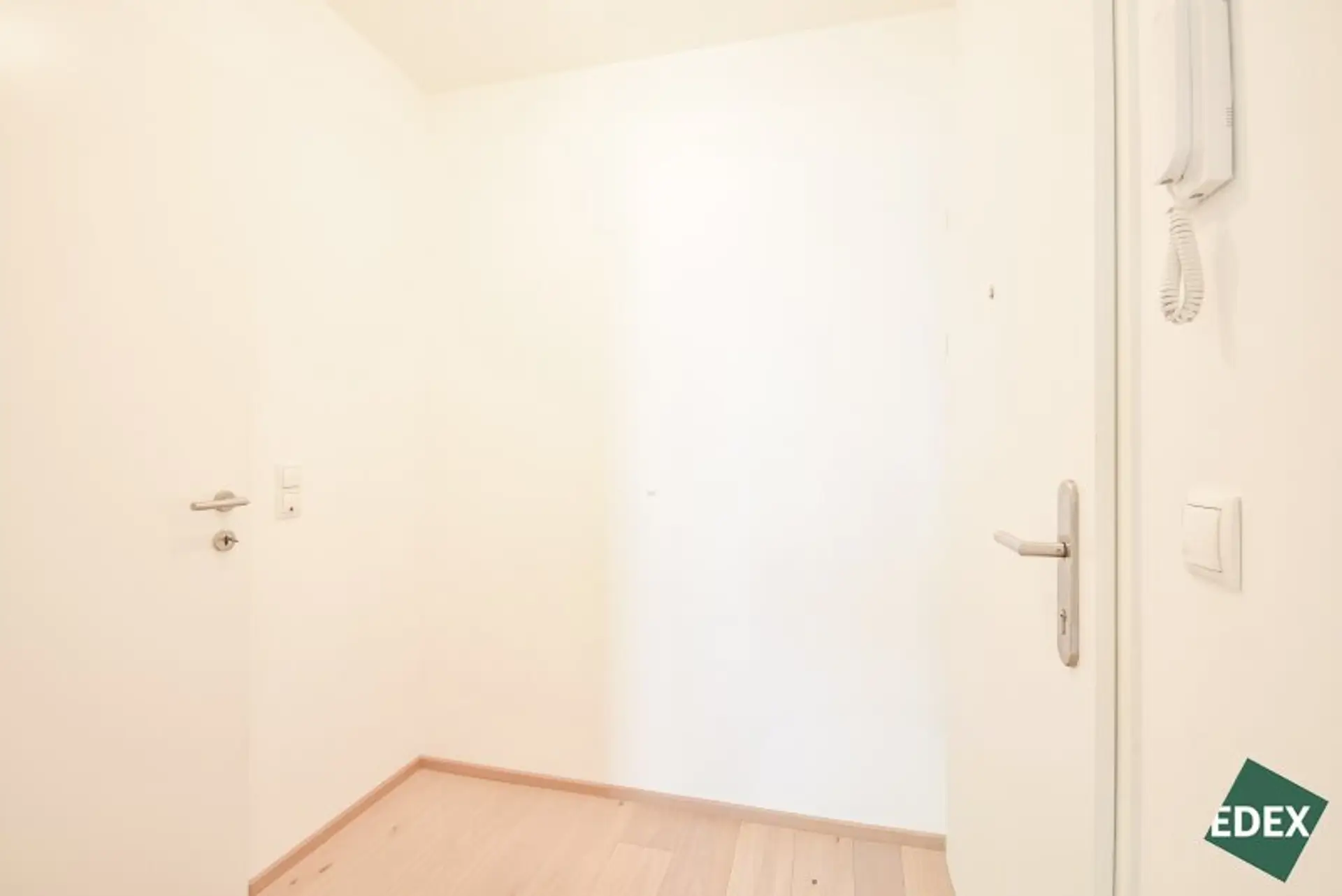 Der zentrale Vorraum erschließt das Wohnzimmer und einen Abstellraum. Die großzügige Wohnküche mit fast 27 m² ist das Herzstück und bietet durch die großen Fensterflächen viel Tageslicht. Angrenzend befindet sich der Balkon – ideal für entspannte Stunden im Freien. Die gesamte Wohnung ist in den ruhigen Innenhof ausgerichtet.