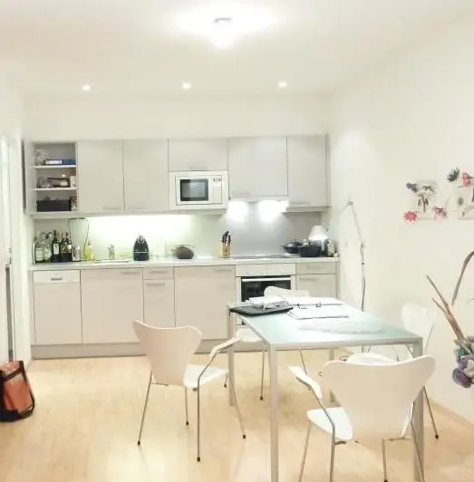 Die Wohnung befindet sich im 6. Obergeschoss (kein Fenster straßenseitig) und verügt über ein großes Wohnzimmer mit einer modernen Markenküche und Schlafbereich bzw. ein Schlafzimmer (je nach Wunsch kann eine Wand aufgestellt werden), ein Badezimmer mit Badewanne und Waschmaschinenanschluss, ein separates WC mit kleinem Waschbecken und einen großen Vorraum.