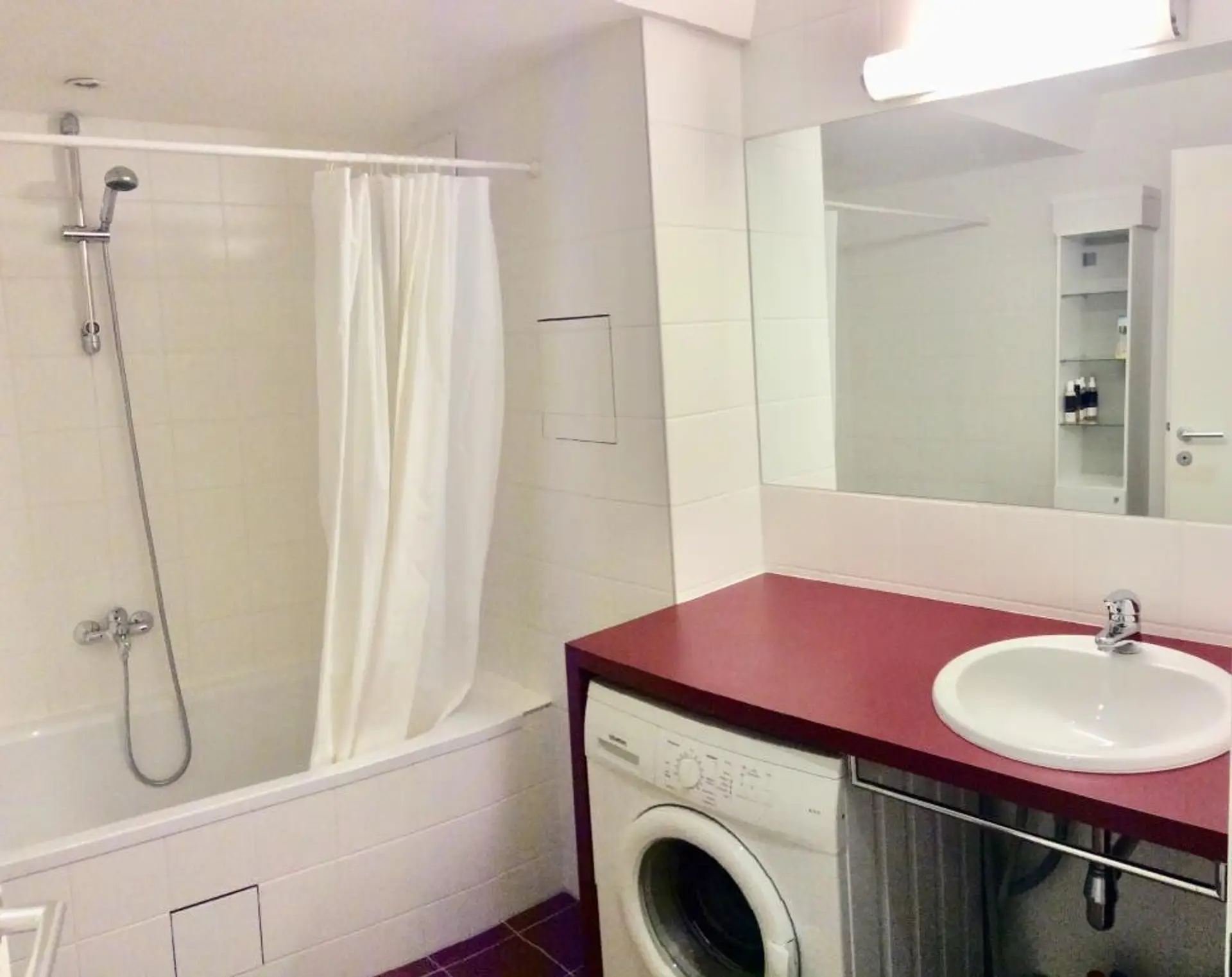 • Badezimmer mit Badewanne und Waschmaschinenanschluss