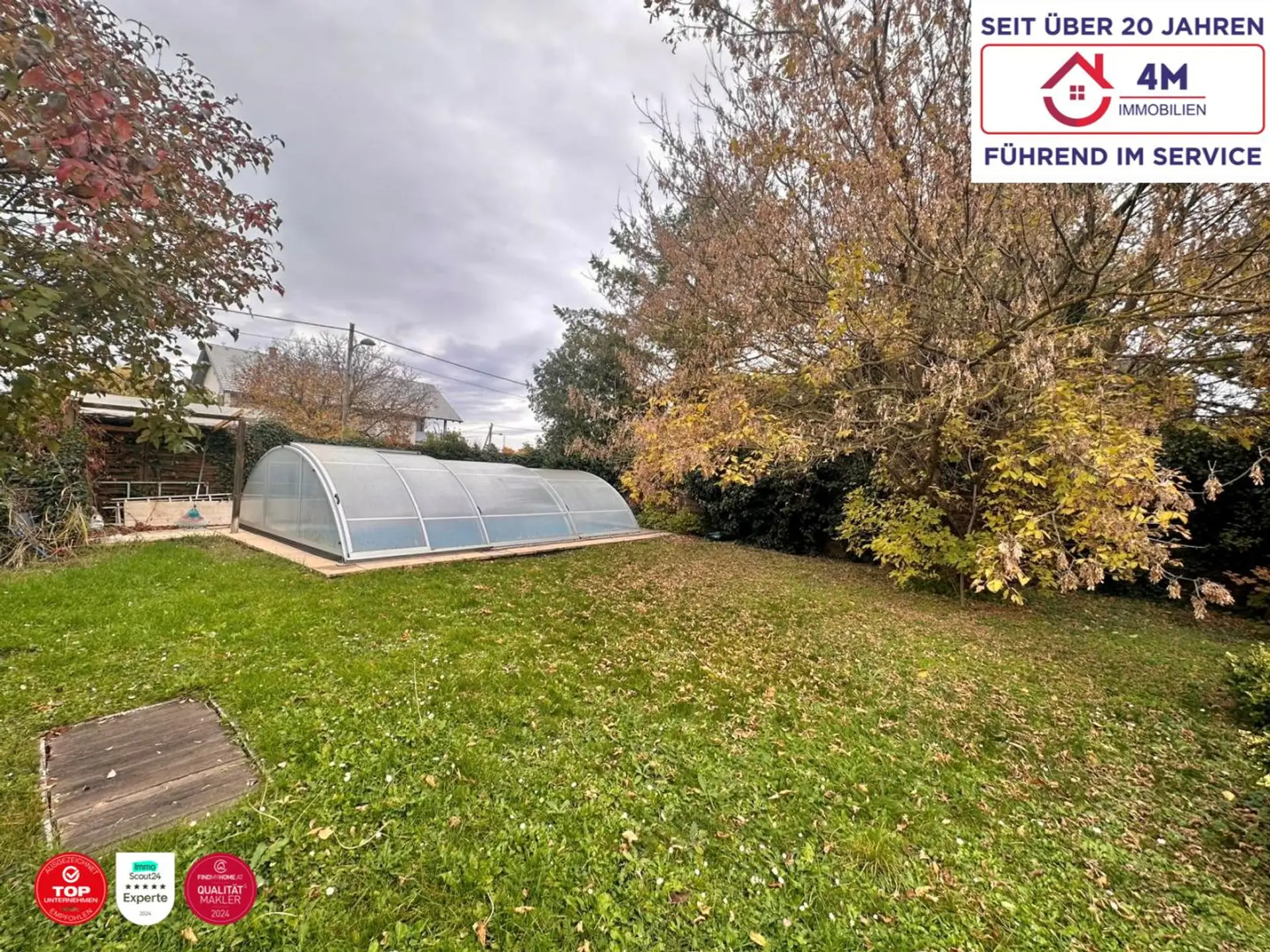 Von der Terrasse landen wir sofort im ruhigen Gartenbereich, der ideal zum Sonnen und Entspannen ist. Ein besonderes Highlight ist der eigene Pool, sowie der private Brunnen, der dem Grundstück einen besonderen Charme verleiht.