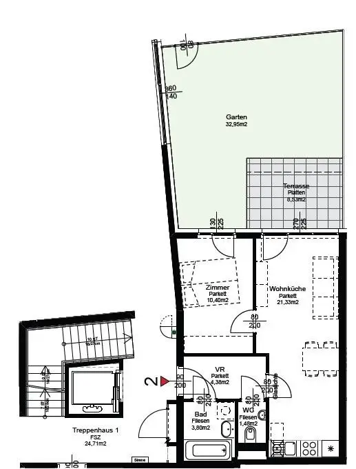 Hopfengasse beim FAC-Platz! 2-Zimmer Neubauwohnung (41,39m²)!