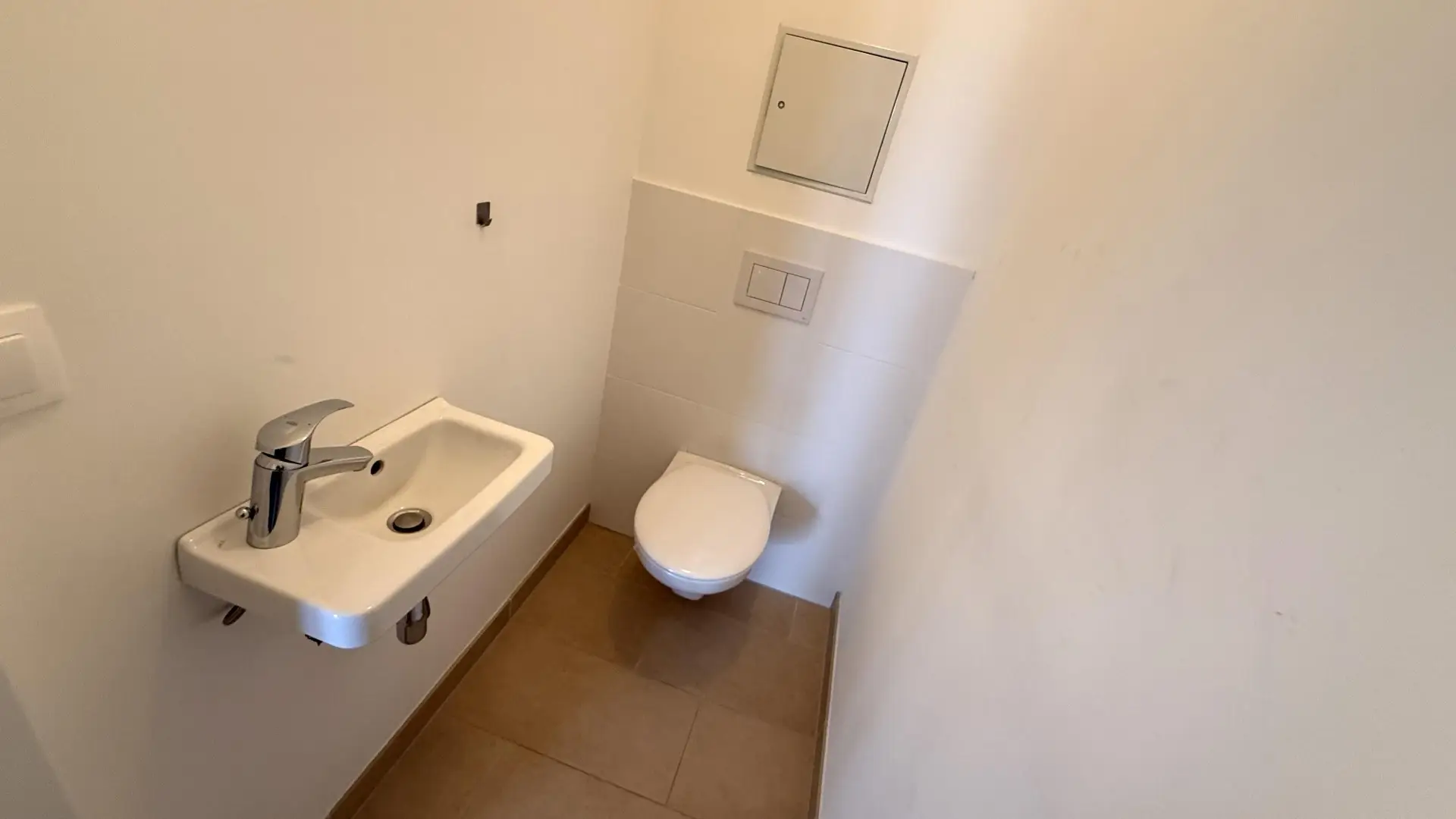 • hochwertige Ausstattung auch im Badezimmer / WC (Laufen, Grohe), Badwannen mit Glasduschwänden