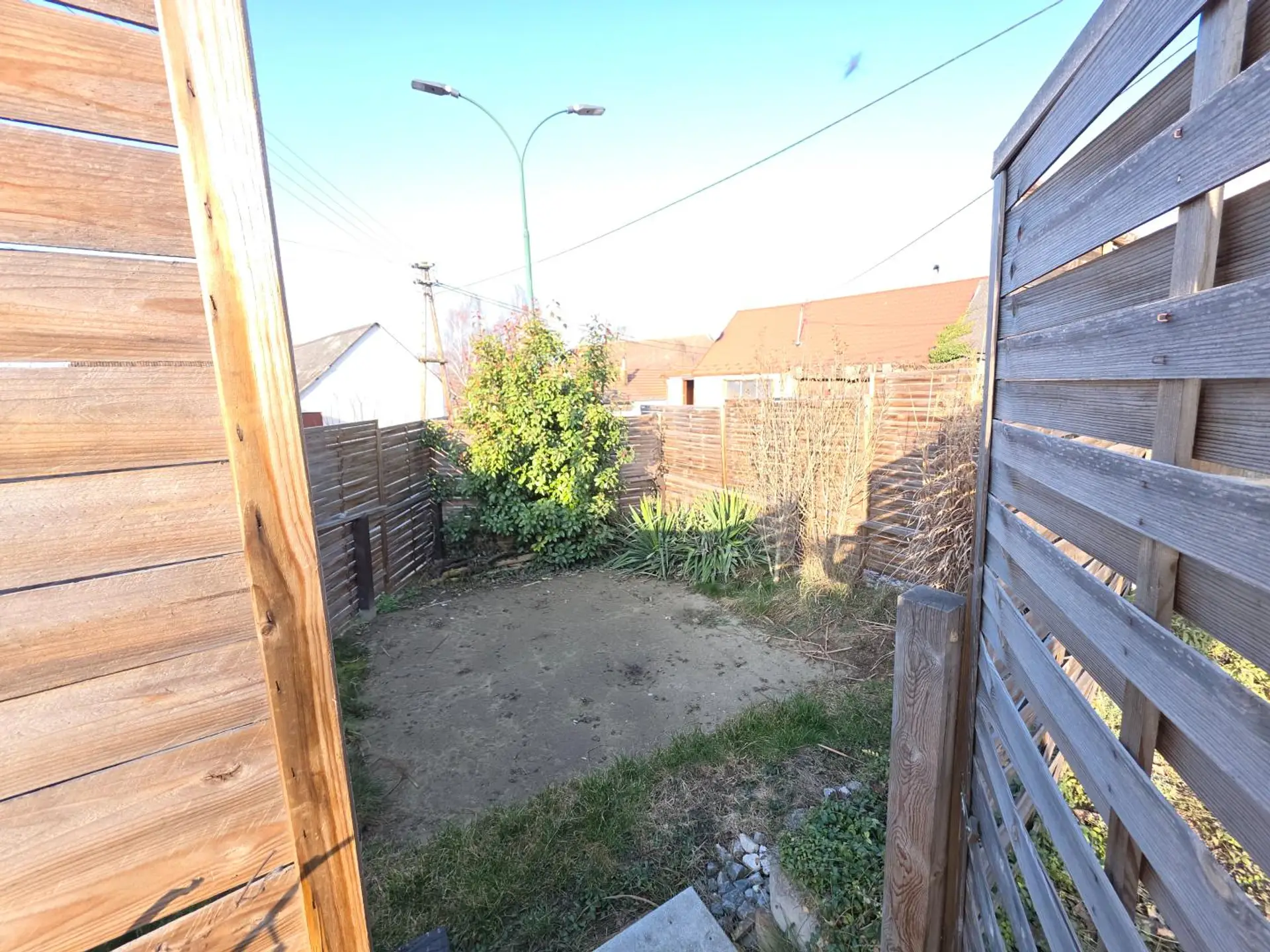 Der Hof mit einer überdachten Terrasse bietet sich als Rückzugsort und für kleine Feierlichkeiten an. Es ist KEIN Garten vorhanden.