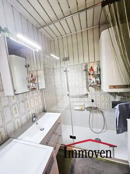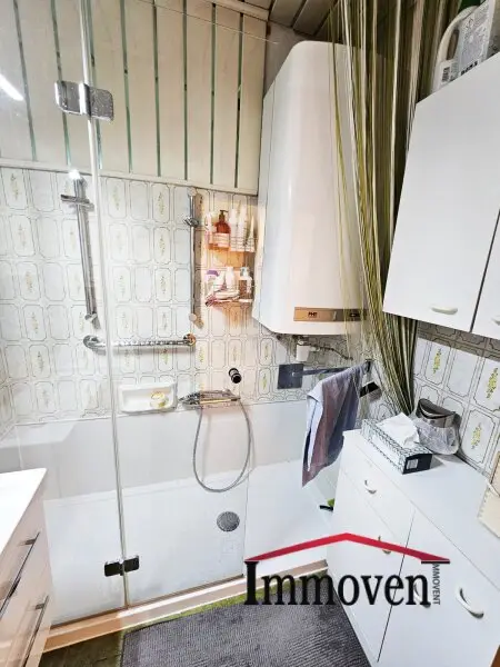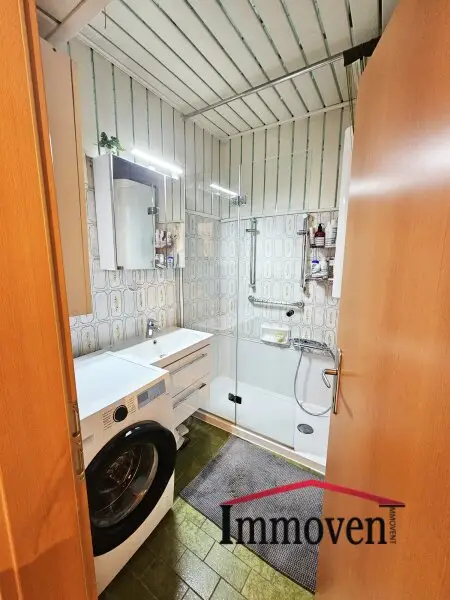 - Badezimmer mit Dusche und Waschmaschinenanschluss