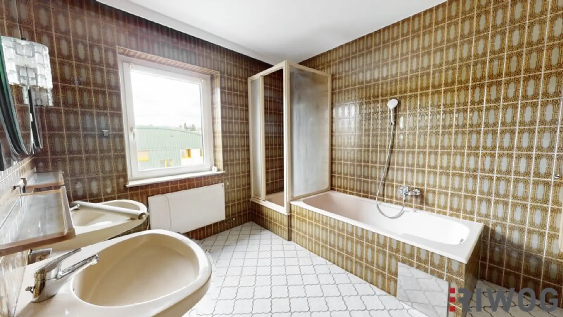- Badezimmer mit Badewanne, Dusche, 2 Waschbecken