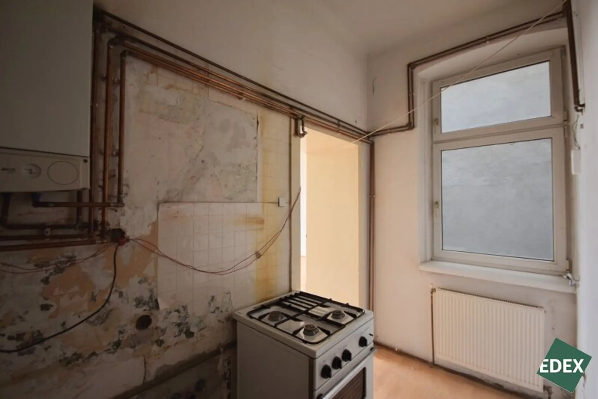 Die Wohnung ist sanierungsbedürftig und bietet eine funktionale Raumaufteilung mit Entwicklungspotenzial: Vom geräumigen Vorraum gelangt man in das große Hauptraumzimmer, von dem aus zwei kleine Kabinette erreichbar sind. Diese können flexibel als Schlafzimmer, Homeoffice oder Gästezimmer genutzt werden. Das Badezimmer mit Fenster ist mit Dusche und WC ausgestattet.