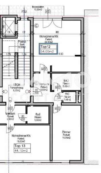 Raumaufteilung: Vorraum, Bad, WC, Schlafzimmer, Wohn-Essküche mit großem (hofseitigen) Balkon