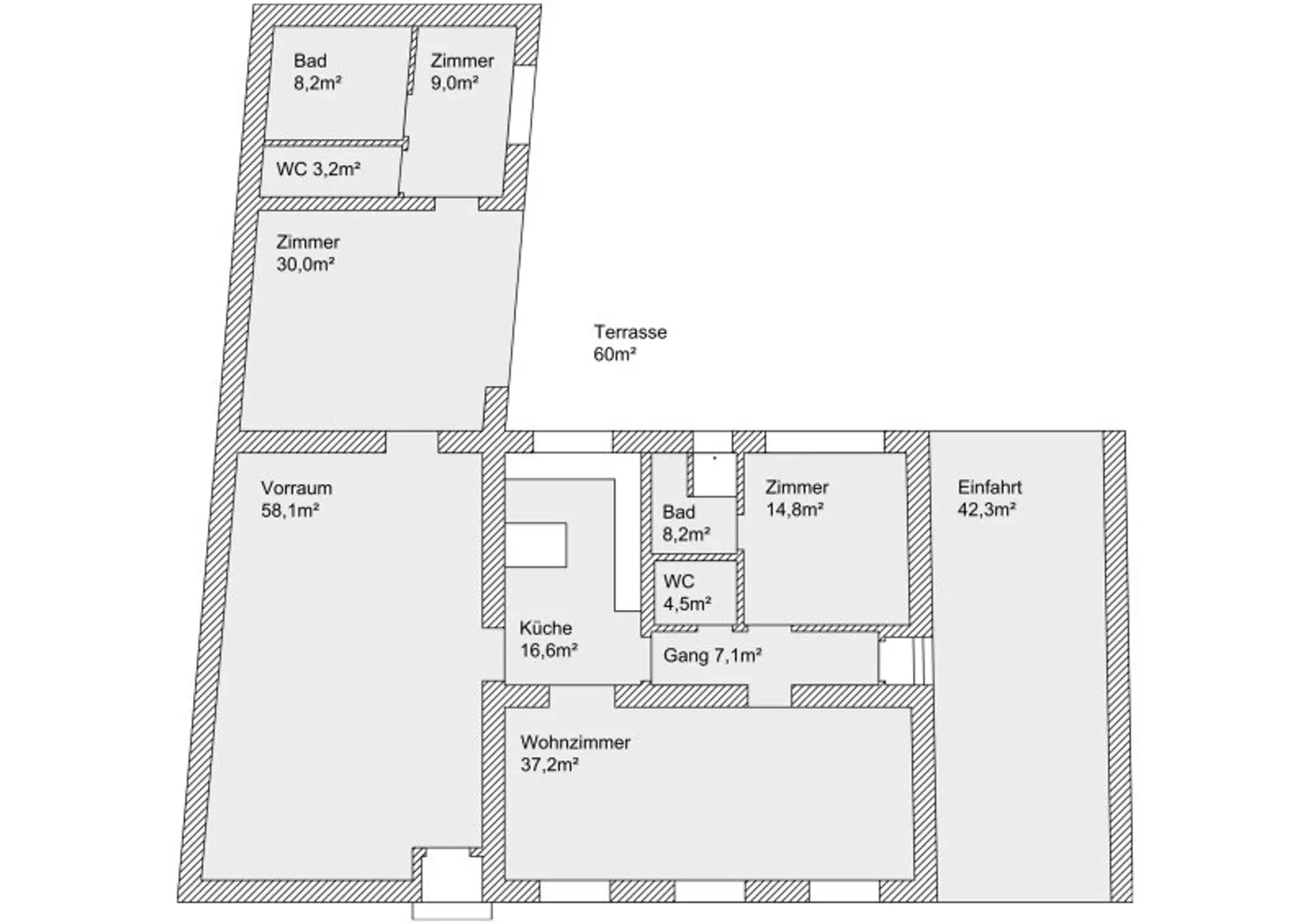 * Eingangsbereich (58 m2): Großzügiger Vorraum mit Garderobe und gleichzeitig Wohnraum