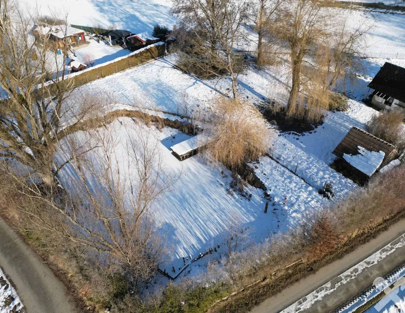 Idyllisch Leben - Grundstück mit altem Baumbestand und Teich Zum Verkauf steht ein Baugrundstück, welches die ideale Gelegenheit bietet Ihr individuelles Wohnprojekt zu realisieren. Die Kombination aus naturnaher U…