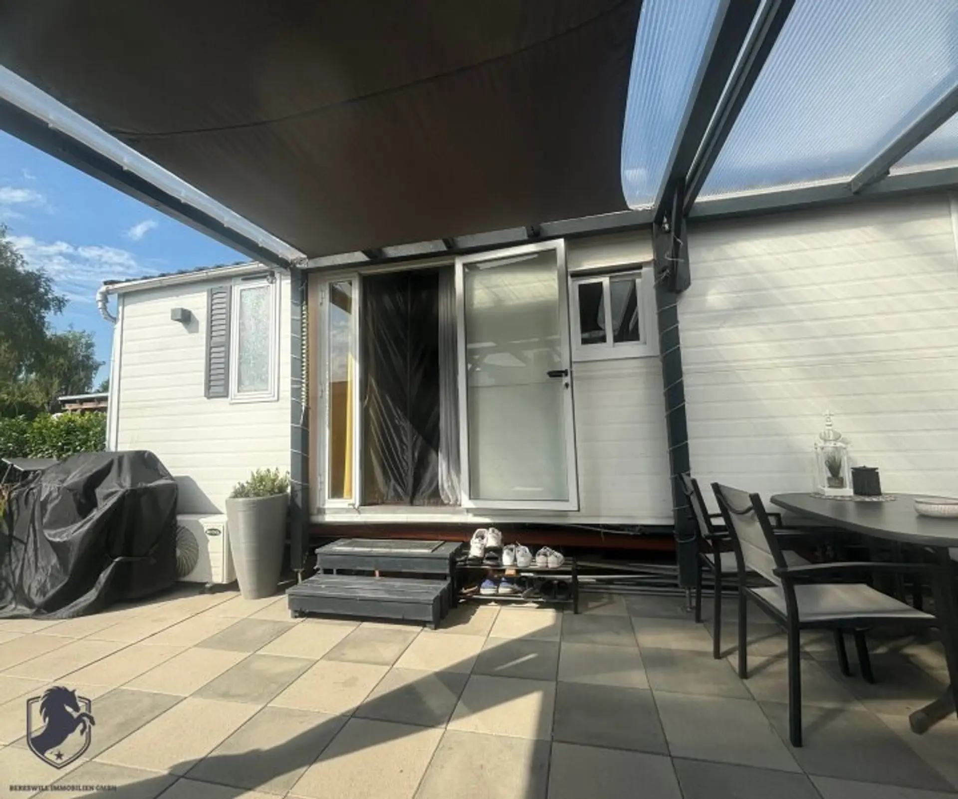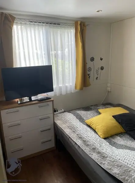 Das Badezimmer ist mit einem Fenster ausgestattet und bietet eine praktische Dusche, die den Komfort Ihres neuen Ferienhauses unterstreicht. Weiterhin sorgt eine Klimaanlage für eine angenehme Raumtemperatur, auch an heißen Sommertagen. Für Ihre Unterhaltung ist ebenfalls gesorgt: