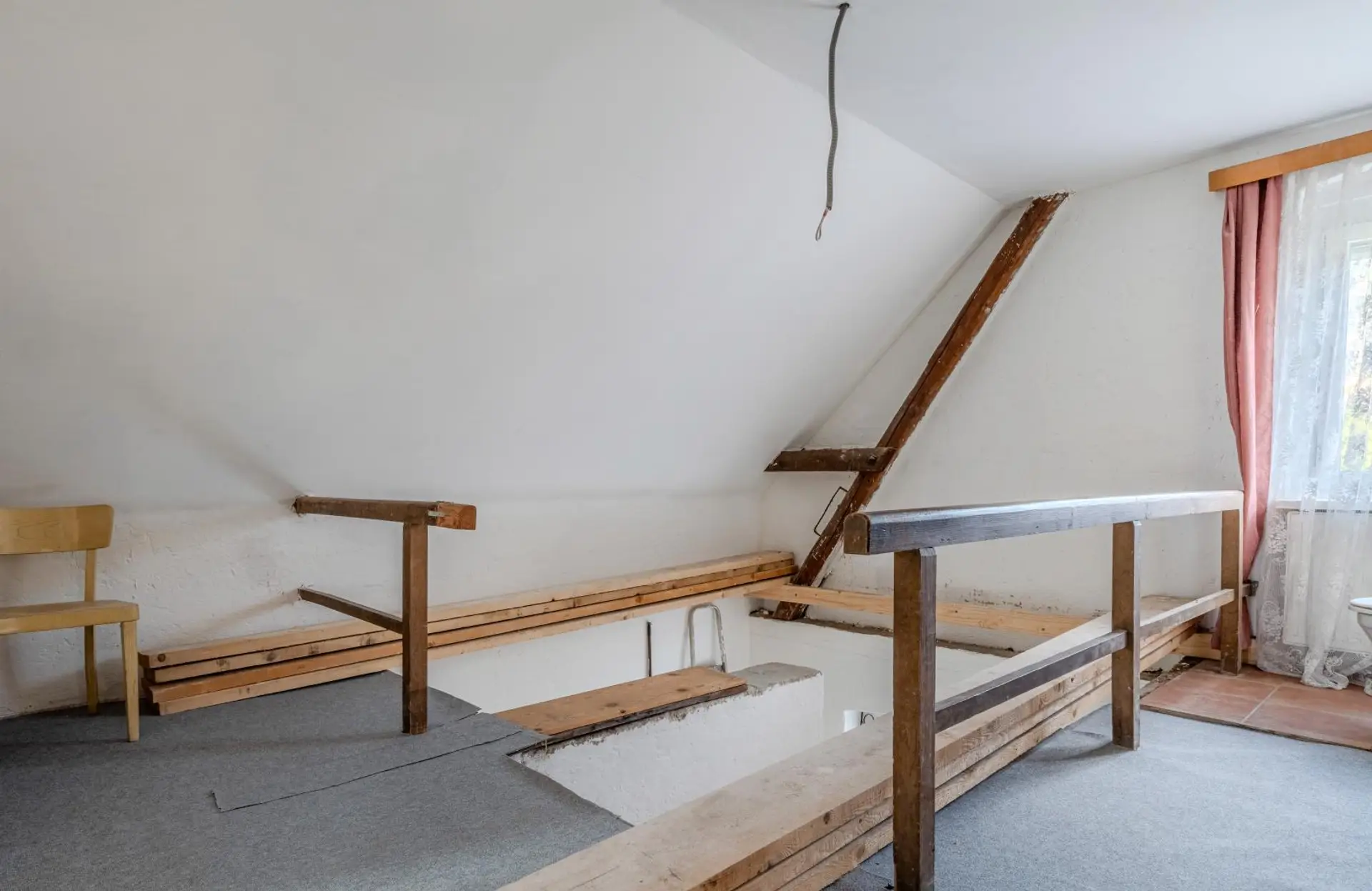 Das im Jahr 1907 in solider Massivbauweise errichtete Haus ist vollständig unterkellert und verfügt über einen charaktervollen Gewölbekeller. Das Obergeschoss wurde teilweise ausgebaut, bietet jedoch noch Potenzial zur individuellen Fertigstellung und Gestaltung.