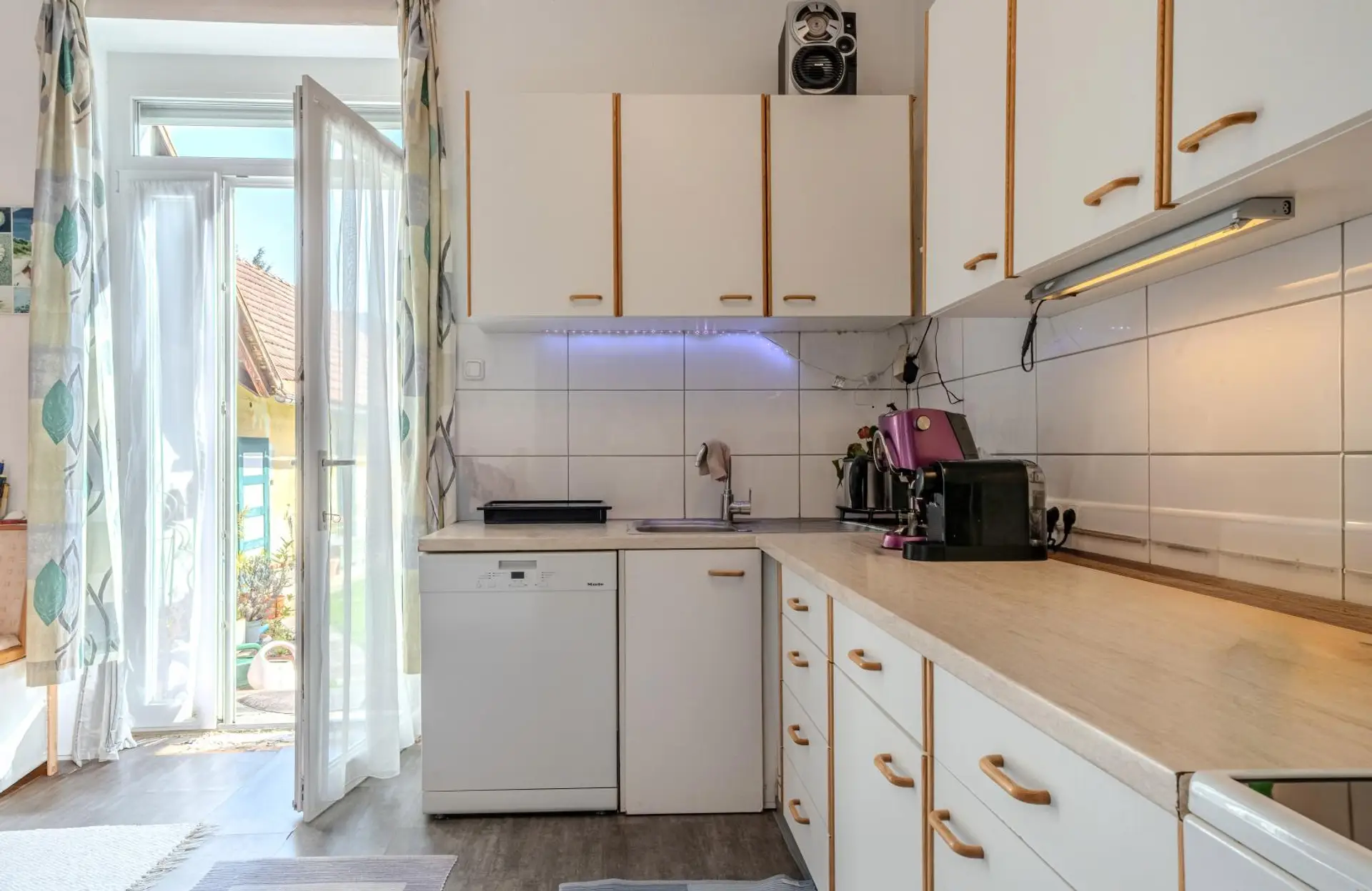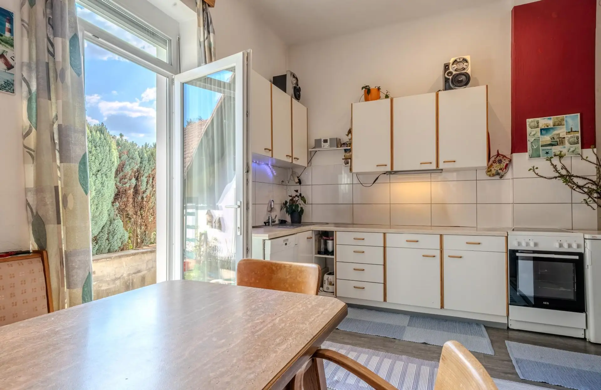 Küche mit Zugang zur Terrasse und in den weitläufigen Garten