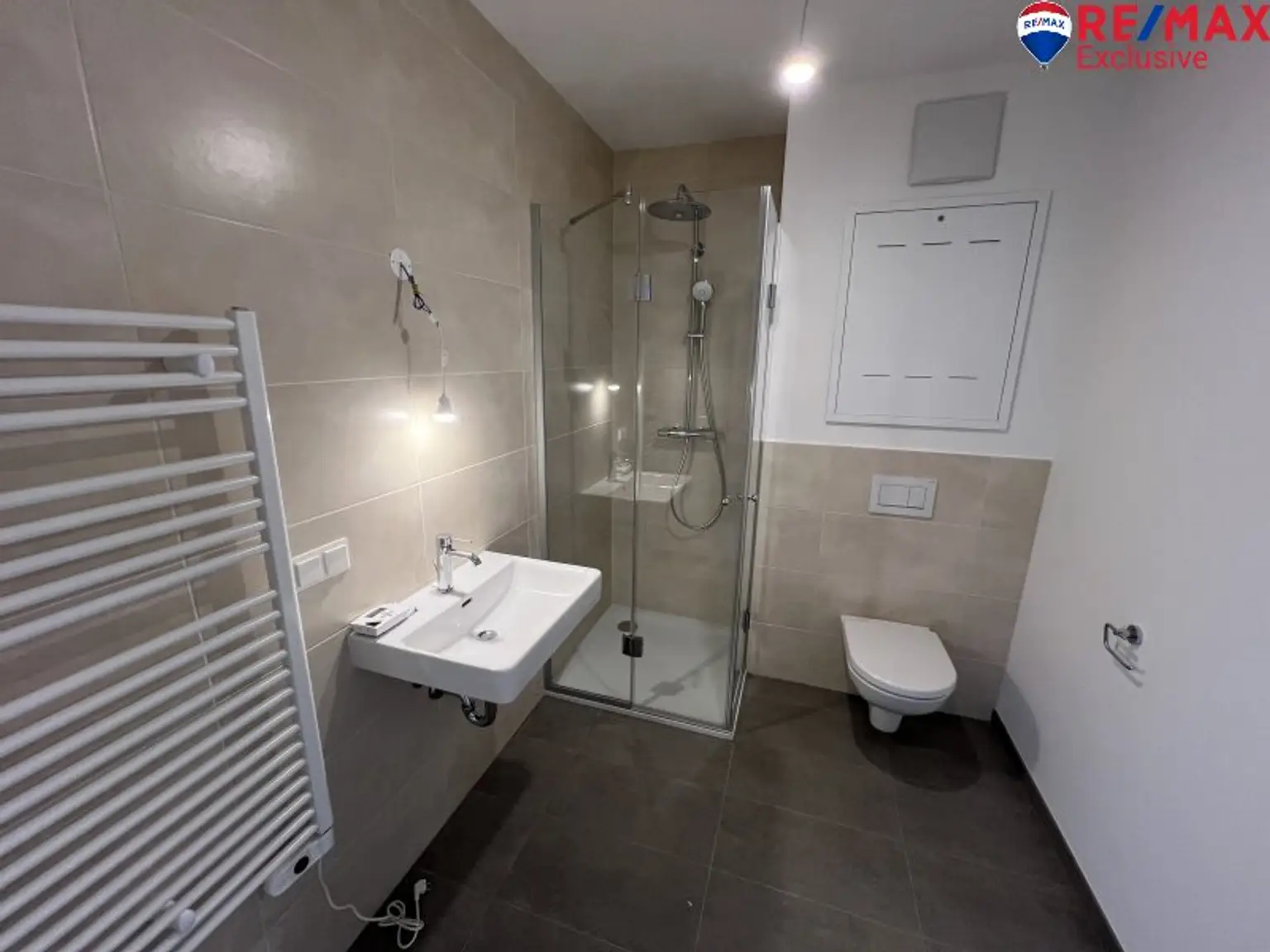 Zwei Zimmer, eine Wohnfläche von 54,04m² und eine Loggia, sowie Fliesen-, Parkett-, Fußbodenheizung (Pellets)-, Personenaufzug und Dusche runden dieses Angebot ab.