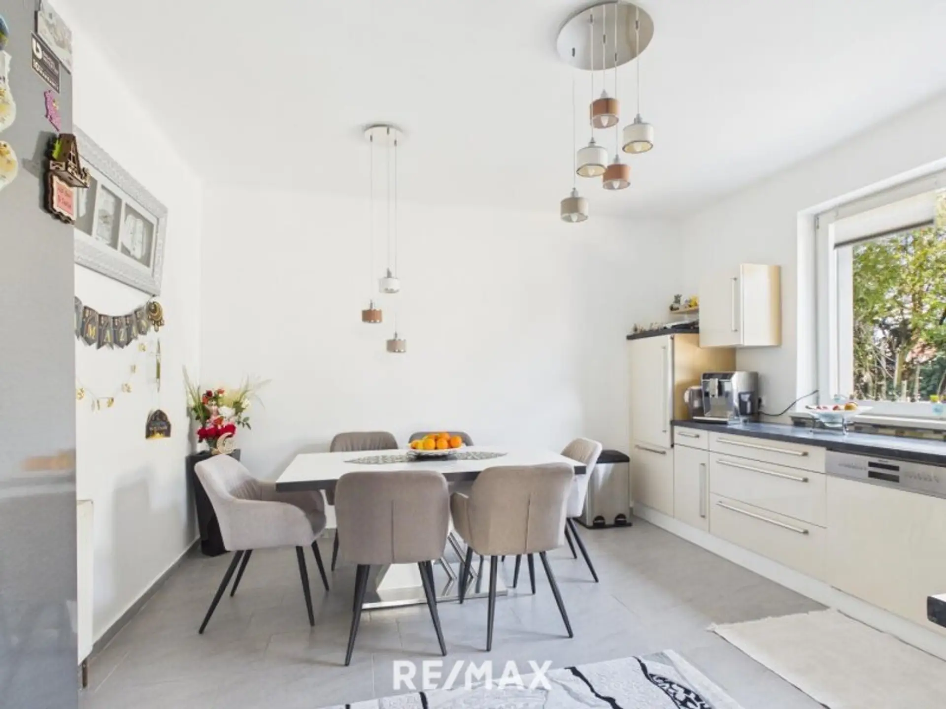 Die separate Küche ist modern eingerichtet und bietet genügend Raum für einen Essbereich. Große Fenster sorgen auch hier für eine helle und freundliche Atmosphäre.