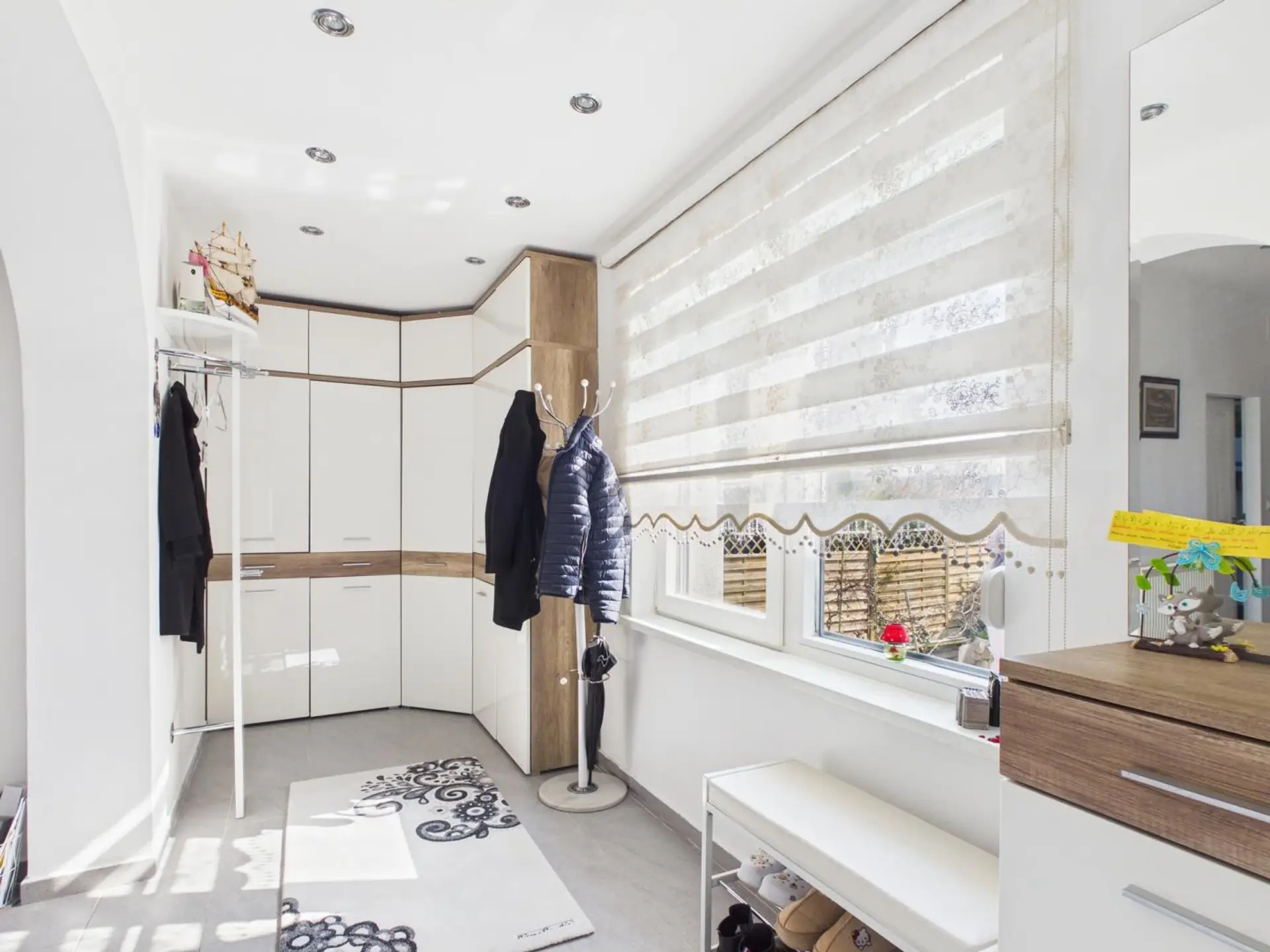 Ein besonderes Highlight im Erdgeschoss ist der großzügige und neuerrichtete Wintergarten, der zusätzlichen Wohnraum schafft und einen wunderbaren Blick in den Garten eröffnet. Durch seine großen Glasflächen entsteht ein lichtdurchfluteter Raum, der sich ideal als Essbereich, Ruhezone oder Treffpunkt für Familie und Freunde eignet. Als nächstes empfängt Sie ein geräumiger Vorraum, der ausreichend Platz für Garderobe und Stauraum bietet. Von hier aus gelangen Sie in den zentralen Wohnbereich des Hauses. Das helle Wohnzimmer bildet das Herzstück der Immobilie mit viel Platz für gemütliche Stunden mit der Familie oder gesellige Abende mit Gästen.