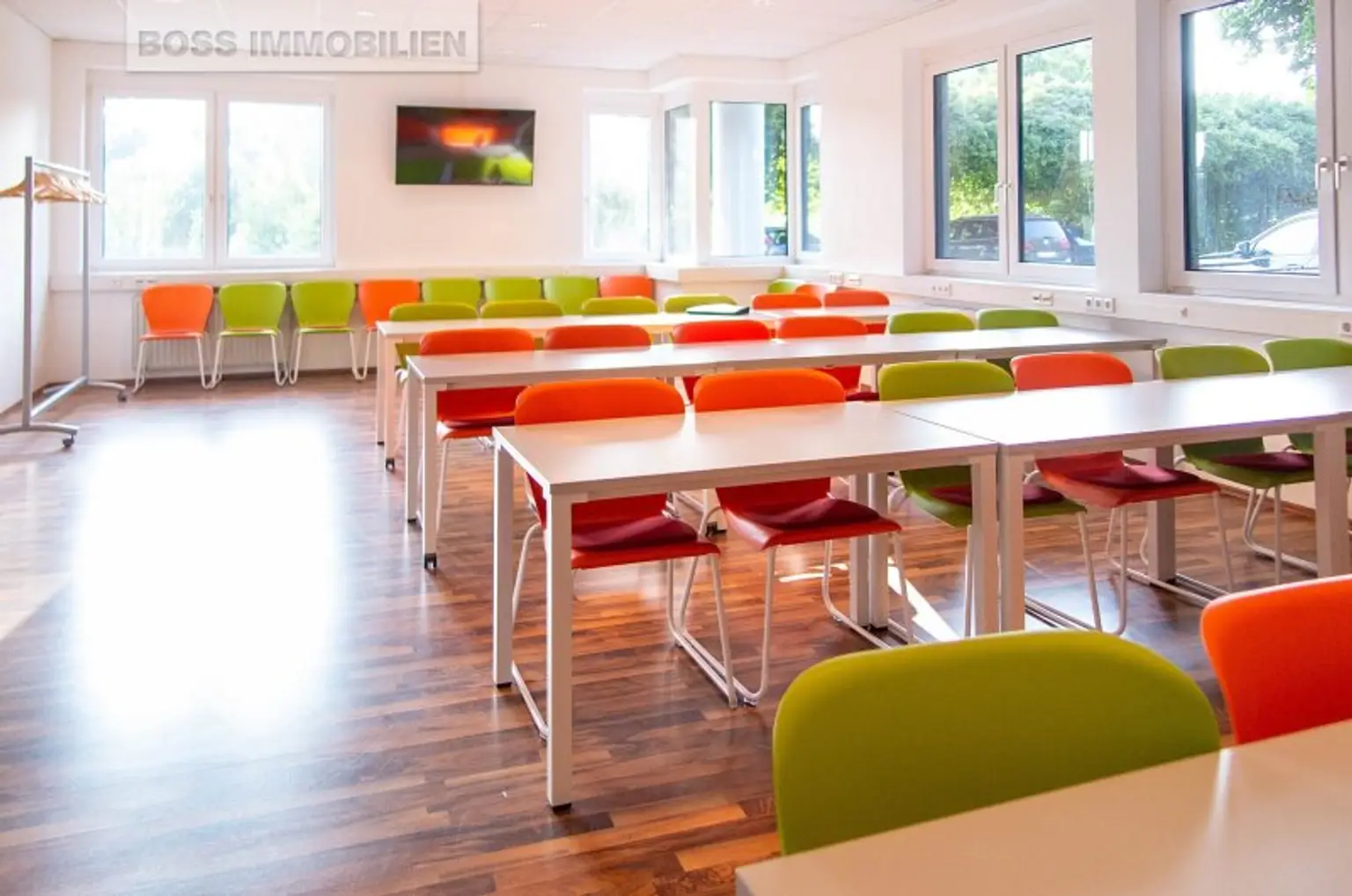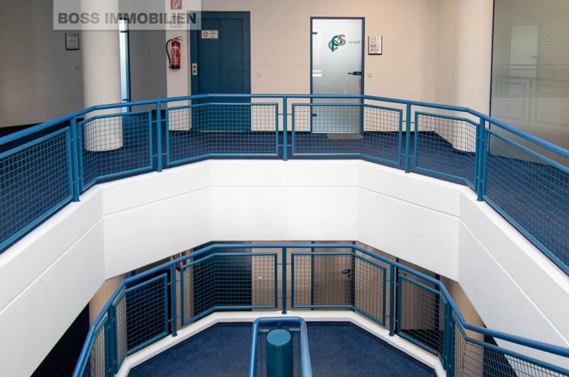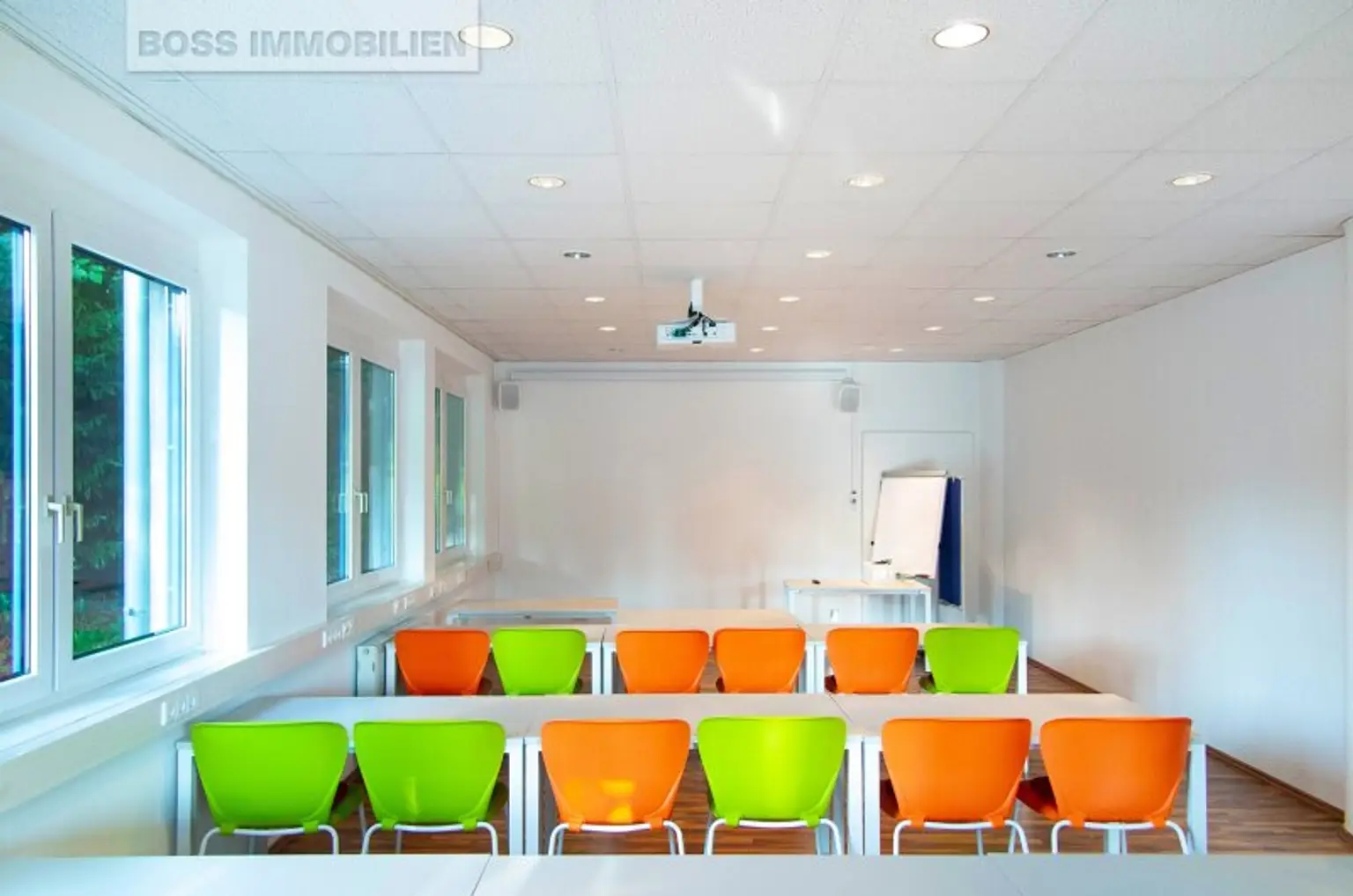 Der helle Büroraum ist mit Teppichboden ausgestattet. Große Deckenlampen erhellen Ihren Arbeitsplatz an bedeckten Tagen und auch für die EDV-Verkabelung ist schon gesorgt.