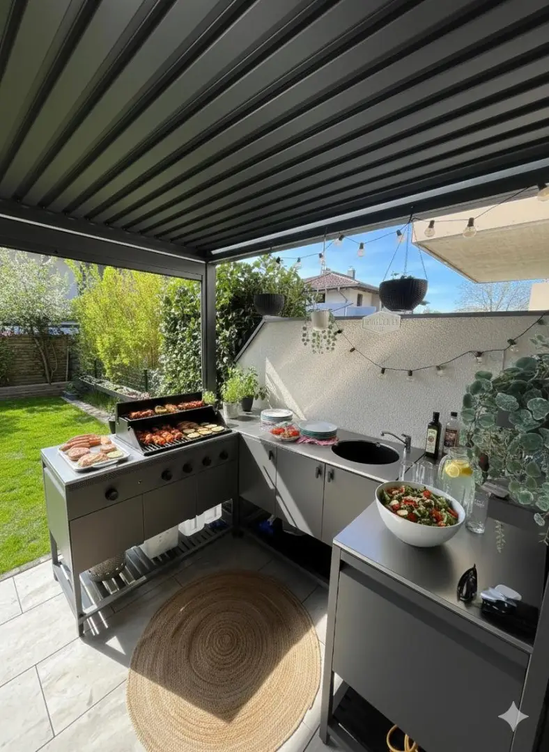 Garten: 12m² Terrasse inkl. Aussen-Grillküche plus ca. 80m² Alleingarten